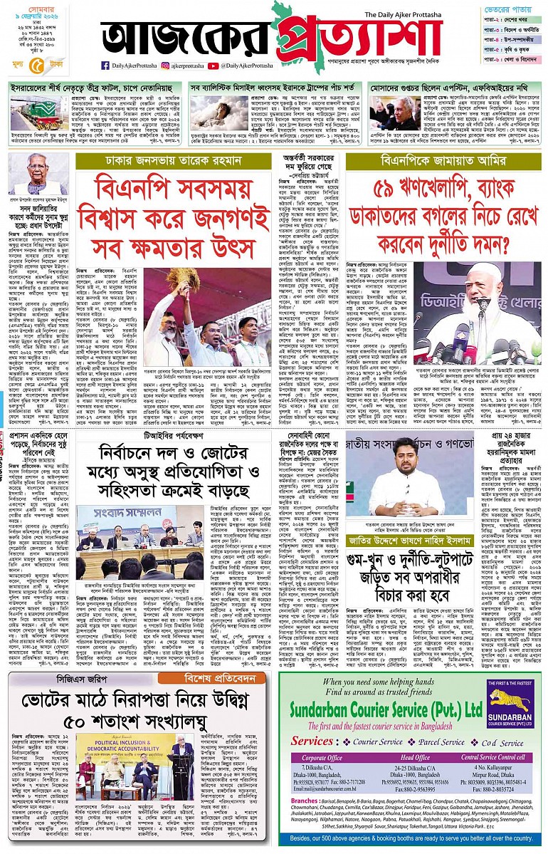 বর্ষ ৩৩ সংখ্যা ২৭৯ February 08, 2026 রোববার ৮ ফেব্রুয়ারি ২০২৬ ঢাকা ২৫ মাঘ ১৪৩২ বঙ্গাব্দ ১৯ শাবান ১৪৪৭ রেজি.নং-ডিএ-১৩৯৯ Page 1Page 2Page 3Page 4Page 5Page 6Page 7Page 8 Thumbnails × বর্ষ ৩৩ সংখ্যা ২৭৯ পৃষ্ঠা-১।-প্রথম-পাতাপৃষ্ঠা-২।-দেশের-খবরপৃষ্ঠা-৩।-বিদেশের-খবরপৃষ্ঠা-৪।-উপ-সম্পাদকীয়-পৃষ্ঠা-৫।-বাণিজ্যপৃষ্ঠা-৬।-খেলাধুলাপৃষ্ঠা-৭।-খবরপৃষ্ঠা-৮।-শেষের-পাতা << First << 1 2 >> Last >> Hide পৃষ্ঠা-১।-প্রথম-পাতাপৃষ্ঠা-২।-দেশের-খবরপৃষ্ঠা-৩।-বিদেশের-খবরপৃষ্ঠা-৪।-উপ-সম্পাদকীয়-পৃষ্ঠা-৫।-বাণিজ্যপৃষ্ঠা-৬।-খেলাধুলাপৃষ্ঠা-৭।-খবরপৃষ্ঠা-৮।-শেষের-পাতা পৃষ্ঠা-১।-প্রথম-পাতা