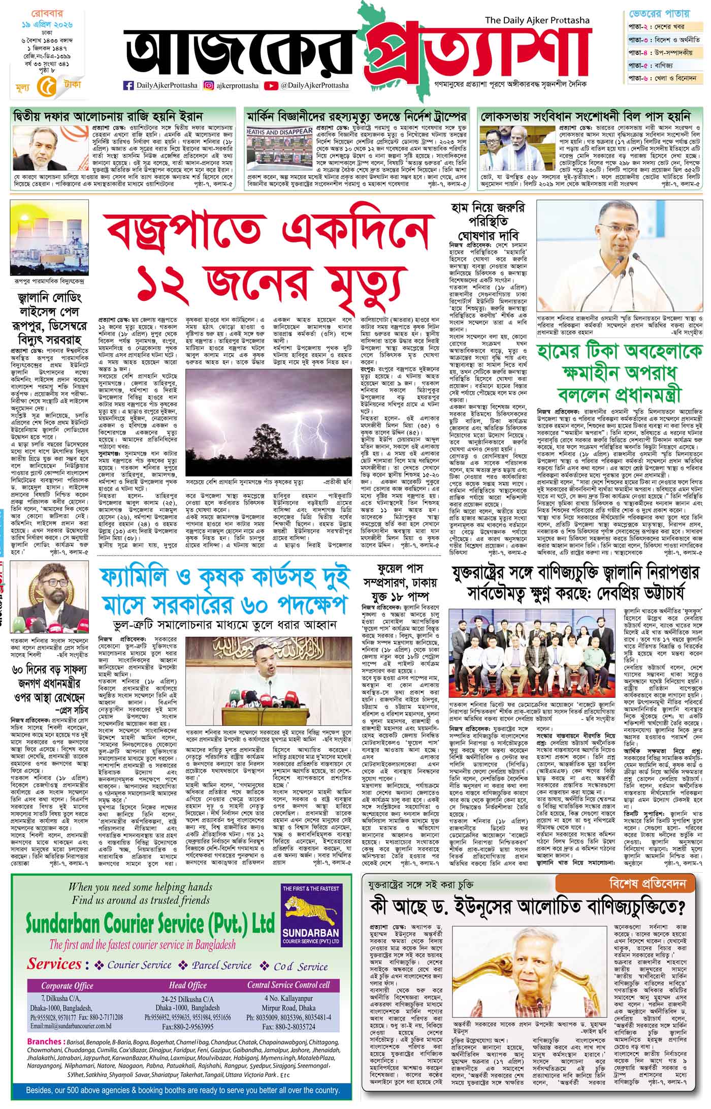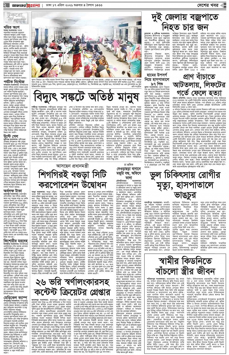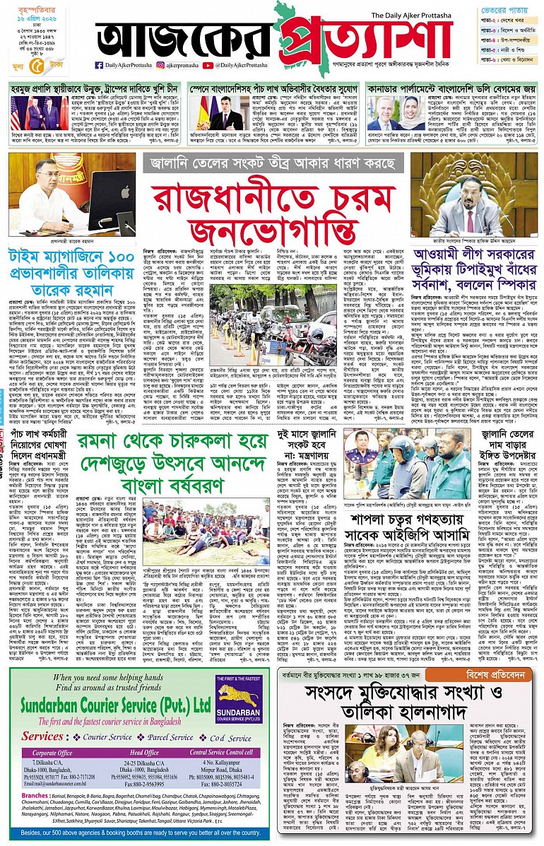 বর্ষ ৩৩ সংখ্যা ৩৪০ April 18, 2026 শনিবার ১৮ এপ্রিল ২০২৬ ঢাকা ৫ বৈশাখ ১৪৩২ বঙ্গাব্দ ২৯ শাওয়াল ১৪৪৭ রেজি.নং-ডিএ-১৩৯৯ Page 1Page 2Page 3Page 4Page 5Page 6Page 7Page 8 Thumbnails × বর্ষ ৩৩ সংখ্যা ৩৪০ পৃষ্ঠা-১।-প্রথম-পাতাপৃষ্ঠা-২।-দেশের-খবরপৃষ্ঠা-৩।-বিদেশের-খবরপৃষ্ঠা-৪।-উপ-সম্পাদকীয়-পৃষ্ঠা-৫।-সাহিত্যপৃষ্ঠা-৬।-খেলাধুলাপৃষ্ঠা-৭।-খবরপৃষ্ঠা-৮।-শেষের-পাতা << First << 1 2 >> Last >> Hide পৃষ্ঠা-১।-প্রথম-পাতাপৃষ্ঠা-২।-দেশের-খবরপৃষ্ঠা-৩।-বিদেশের-খবরপৃষ্ঠা-৪।-উপ-সম্পাদকীয়-পৃষ্ঠা-৫।-সাহিত্যপৃষ্ঠা-৬।-খেলাধুলাপৃষ্ঠা-৭।-খবরপৃষ্ঠা-৮।-শেষের-পাতা পৃষ্ঠা-১।-প্রথম-পাতা