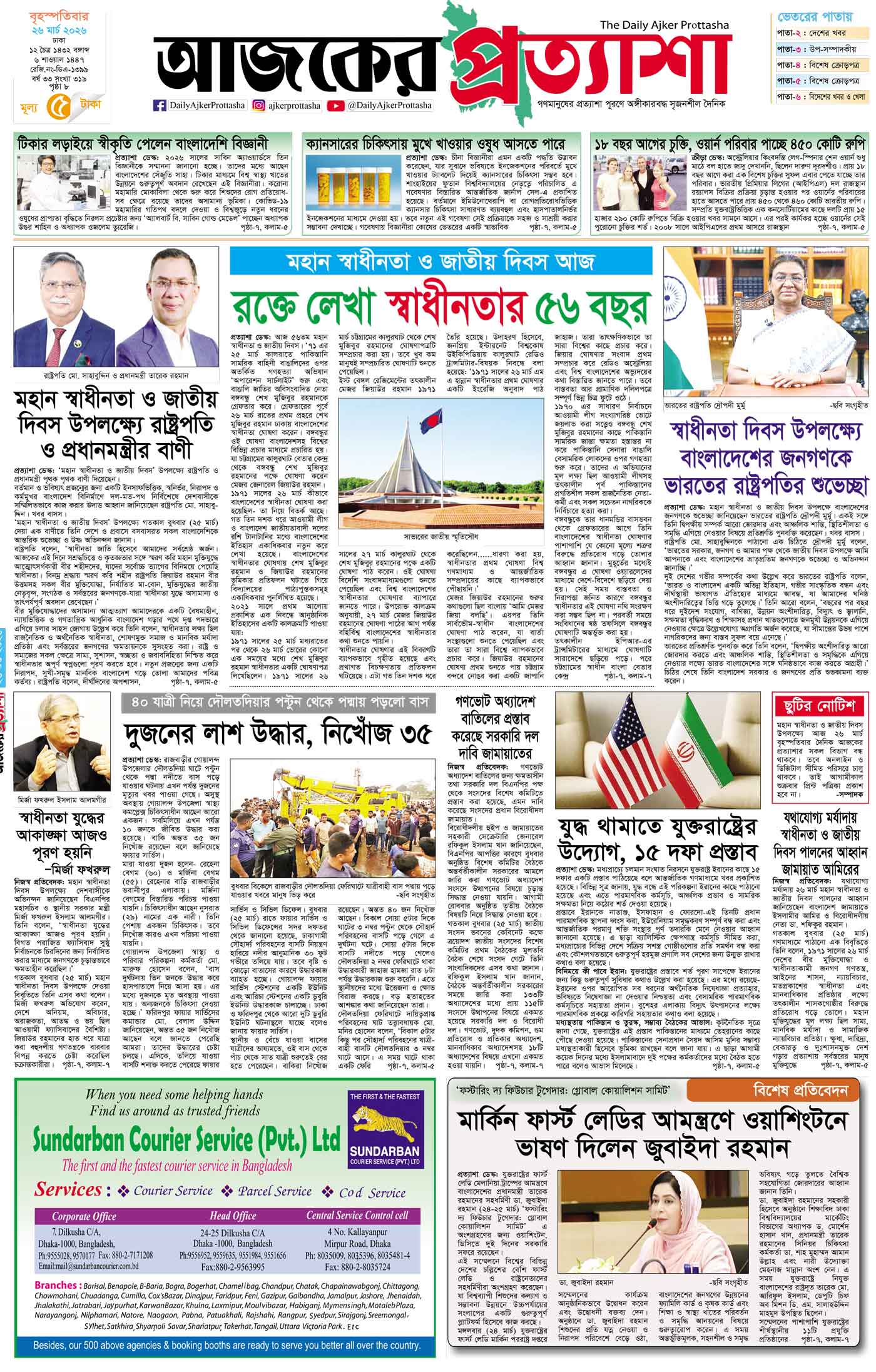বর্ষ ৩৩ সংখ্যা ৩১৭ March 19, 2026 বৃহস্পতিবার ১৯ মার্চ ২০২৬ ঢাকা ৫ চৈত্র ১৪৩২ বঙ্গাব্দ ২৯ রমজান ১৪৪৭ রেজি.নং-ডিএ-১৩৯৯ Page 1Page 2Page 3Page 4Page 5Page 6Page 7Page 8 Thumbnails × বর্ষ ৩৩ সংখ্যা ৩১৭ পৃষ্ঠা-১।-প্রথম-পাতাপৃষ্ঠা-২।-দেশের-খবরপৃষ্ঠা-৩।-বিদেশের-খবরপৃষ্ঠা-৪।-উপ-সম্পাদকীয়-পৃষ্ঠা-৫।-নারী-ও-শিশুপৃষ্ঠা-৬।-খেলাধুলাপৃষ্ঠা-৭।-খবরপৃষ্ঠা-৮।-শেষের-পাতা << First << 1 2 >> Last >> Hide পৃষ্ঠা-১।-প্রথম-পাতাপৃষ্ঠা-২।-দেশের-খবরপৃষ্ঠা-৩।-বিদেশের-খবরপৃষ্ঠা-৪।-উপ-সম্পাদকীয়-পৃষ্ঠা-৫।-নারী-ও-শিশুপৃষ্ঠা-৬।-খেলাধুলাপৃষ্ঠা-৭।-খবরপৃষ্ঠা-৮।-শেষের-পাতা পৃষ্ঠা-১।-প্রথম-পাতা
