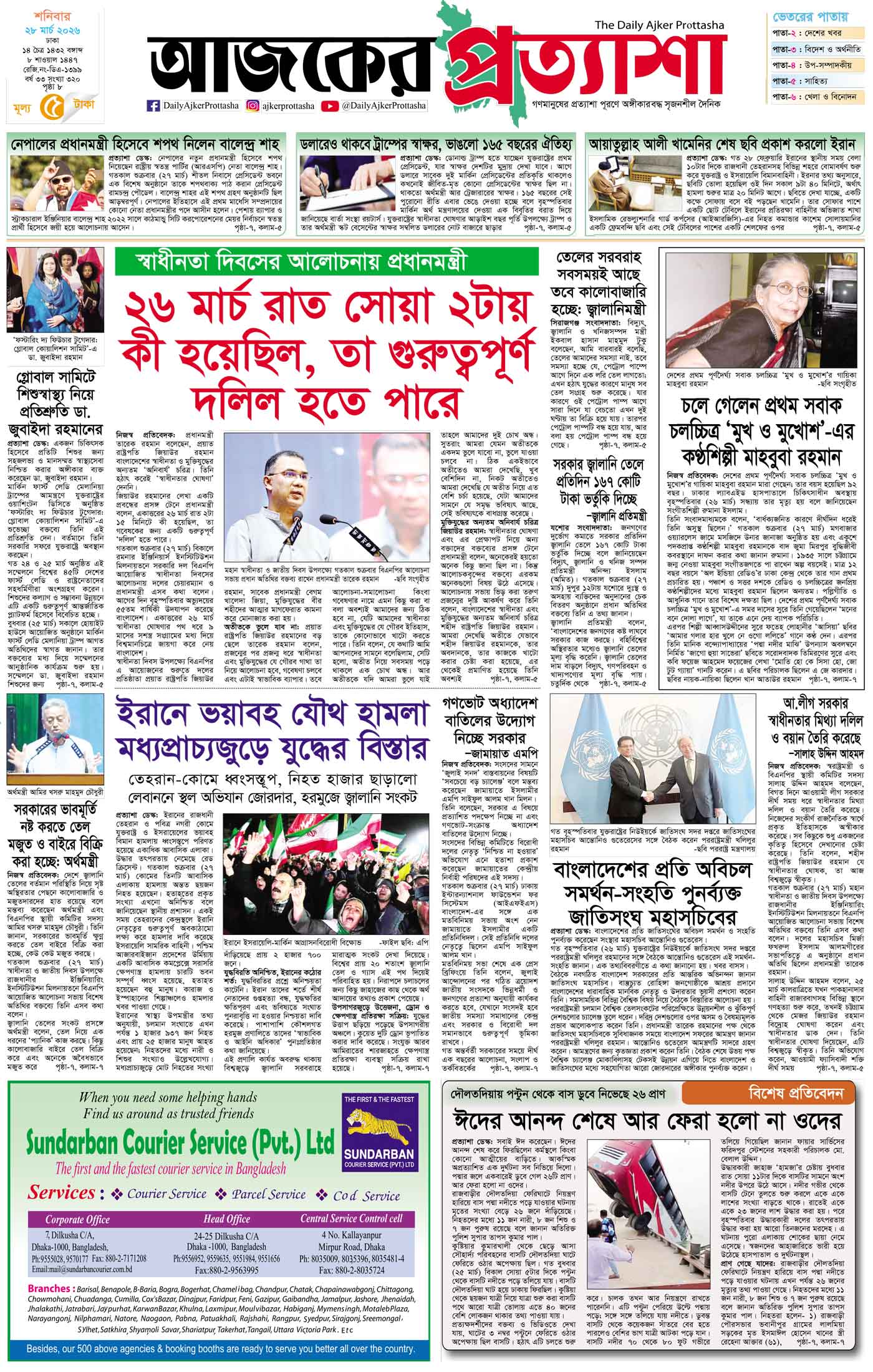 বর্ষ ৩৩ সংখ্যা ৩১৯ March 26, 2026 বুধবার ২৬ মার্চ ২০২৬ ঢাকা ১২ চৈত্র ১৪৩২ বঙ্গাব্দ ৬ শাওয়াল ১৪৪৭ রেজি.নং-ডিএ-১৩৯৯ Page 1Page 2Page 3Page 4Page 5Page 6Page 7Page 8 Thumbnails × বর্ষ ৩৩ সংখ্যা ৩১৯ পৃষ্ঠা-১।-প্রথম-পাতাপৃষ্ঠা-২।-দেশের-খবরপৃষ্ঠা-৩।-উপ-সম্পাদকীয়-পৃষ্ঠা-৪।-বিশেষ-ক্রুড়পত্রপৃষ্ঠা-৫।-বিশেষ-ক্রুড়পত্রপৃষ্ঠা-৬।-খেলাধুলাপৃষ্ঠা-৭।-খবরপৃষ্ঠা-৮।-শেষের-পাতা << First << 1 2 >> Last >> Hide পৃষ্ঠা-১।-প্রথম-পাতাপৃষ্ঠা-২।-দেশের-খবরপৃষ্ঠা-৩।-উপ-সম্পাদকীয়-পৃষ্ঠা-৪।-বিশেষ-ক্রুড়পত্রপৃষ্ঠা-৫।-বিশেষ-ক্রুড়পত্রপৃষ্ঠা-৬।-খেলাধুলাপৃষ্ঠা-৭।-খবরপৃষ্ঠা-৮।-শেষের-পাতা পৃষ্ঠা-১।-প্রথম-পাতা