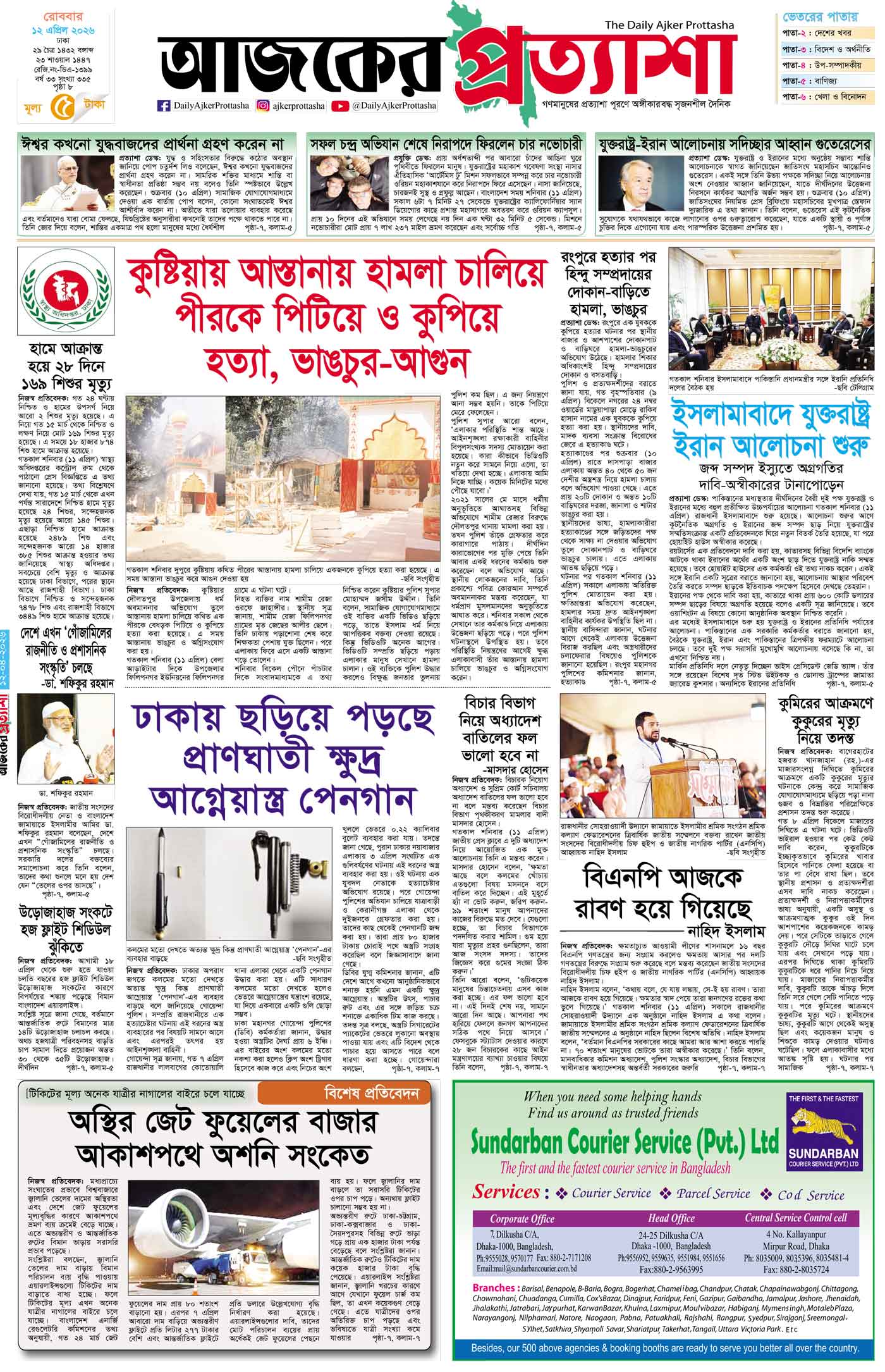 বর্ষ ৩৩ সংখ্যা ৩৩৫ April 12, 2026 রোববার ১২ এপ্রিল ২০২৬ ঢাকা ২৯ চৈত্র ১৪৩২ বঙ্গাব্দ ২৩ শাওয়াল ১৪৪৭ রেজি.নং-ডিএ-১৩৯৯ Page 1Page 2Page 3Page 4Page 5Page 6Page 7Page 8 Thumbnails × বর্ষ ৩৩ সংখ্যা ৩৩৫ পৃষ্ঠা-১।-প্রথম-পাতাপৃষ্ঠা-২।-দেশের-খবরপৃষ্ঠা-৩।-বিদেশের-খবরপৃষ্ঠা-৪।-উপ-সম্পাদকীয়-পৃষ্ঠা-৫।-বাণিজ্যপৃষ্ঠা-৬।-খেলাধুলাপৃষ্ঠা-৭।-খবরপৃষ্ঠা-৮।-শেষের-পাতা << First << 1 2 >> Last >> Hide পৃষ্ঠা-১।-প্রথম-পাতাপৃষ্ঠা-২।-দেশের-খবরপৃষ্ঠা-৩।-বিদেশের-খবরপৃষ্ঠা-৪।-উপ-সম্পাদকীয়-পৃষ্ঠা-৫।-বাণিজ্যপৃষ্ঠা-৬।-খেলাধুলাপৃষ্ঠা-৭।-খবরপৃষ্ঠা-৮।-শেষের-পাতা পৃষ্ঠা-১।-প্রথম-পাতা