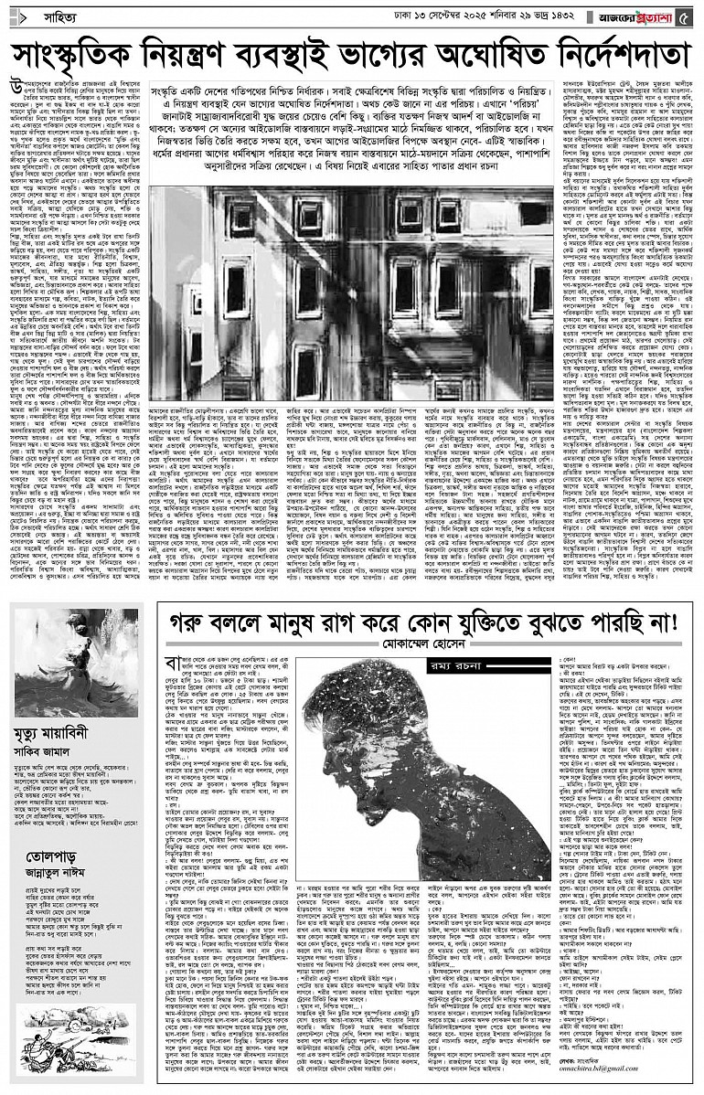 বর্ষ ৩৩ সংখ্যা ১৩৫ Page: 5 September 13, 2025 শনিবার ১৩ সেপ্টেম্বর ২০২৫ ঢাকা ২৯ ভাদ্র ১৪৩২ বঙ্গাব্দ ১৯ রবিউল আউয়াল ১৪৪৭ রেজি.নং-ডিএ-১৩৯৯ Page 1Page 2Page 3Page 4Page 5Page 6Page 7Page 8 Thumbnails × বর্ষ ৩৩ সংখ্যা ১৩৫ পৃষ্ঠা-১।-প্রথম-পাতাপৃষ্ঠা-২।-দেশের-খবরপৃষ্ঠা-৩।-বিদেশের-খবরপৃষ্ঠা-৪।-উপ-সম্পাদকীয়-পৃষ্ঠা-৫।-সাহিত্যপৃষ্ঠা-৬।-খেলাধুলাপৃষ্ঠা-৭।-খবরপৃষ্ঠা-৮।-শেষের-পাতা << First << 4 5 >> Last >> Hide পৃষ্ঠা-১।-প্রথম-পাতাপৃষ্ঠা-২।-দেশের-খবরপৃষ্ঠা-৩।-বিদেশের-খবরপৃষ্ঠা-৪।-উপ-সম্পাদকীয়-পৃষ্ঠা-৫।-সাহিত্যপৃষ্ঠা-৬।-খেলাধুলাপৃষ্ঠা-৭।-খবরপৃষ্ঠা-৮।-শেষের-পাতা পৃষ্ঠা-৫।-সাহিত্য