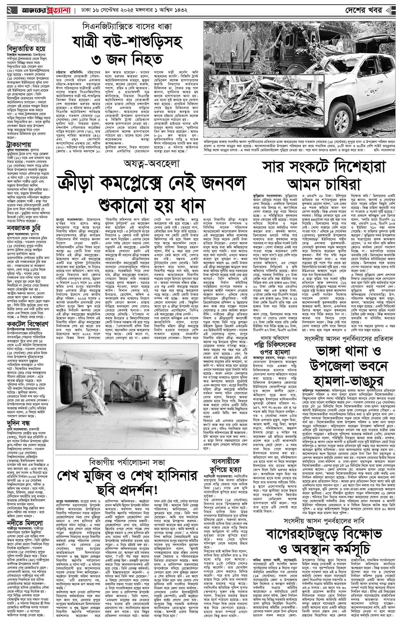 বর্ষ ৩৩ সংখ্যা ১৩৮ Page: 2 September 16, 2025 মঙ্গলবার ১৬ সেপ্টেম্বর ২০২৫ ঢাকা ১ আশ্বিন ১৪৩২ বঙ্গাব্দ ২২ রবিউল আউয়াল ১৪৪৭ রেজি.নং-ডিএ-১৩৯৯ Page 1Page 2Page 3Page 4Page 5Page 6Page 7Page 8 Thumbnails × বর্ষ ৩৩ সংখ্যা ১৩৮ পৃষ্ঠা-১।-প্রথম-পাতাপৃষ্ঠা-২।-দেশের-খবরপৃষ্ঠা-৩।-বিদেশের-খবরপৃষ্ঠা-৪।-উপ-সম্পাদকীয়-পৃষ্ঠা-৫।-লাইফস্টাইলপৃষ্ঠা-৬।-খেলাধুলাপৃষ্ঠা-৭।-খবরপৃষ্ঠা-৮।-শেষের-পাতা << First << 1 2 >> Last >> Hide পৃষ্ঠা-১।-প্রথম-পাতাপৃষ্ঠা-২।-দেশের-খবরপৃষ্ঠা-৩।-বিদেশের-খবরপৃষ্ঠা-৪।-উপ-সম্পাদকীয়-পৃষ্ঠা-৫।-লাইফস্টাইলপৃষ্ঠা-৬।-খেলাধুলাপৃষ্ঠা-৭।-খবরপৃষ্ঠা-৮।-শেষের-পাতা পৃষ্ঠা-২।-দেশের-খবর