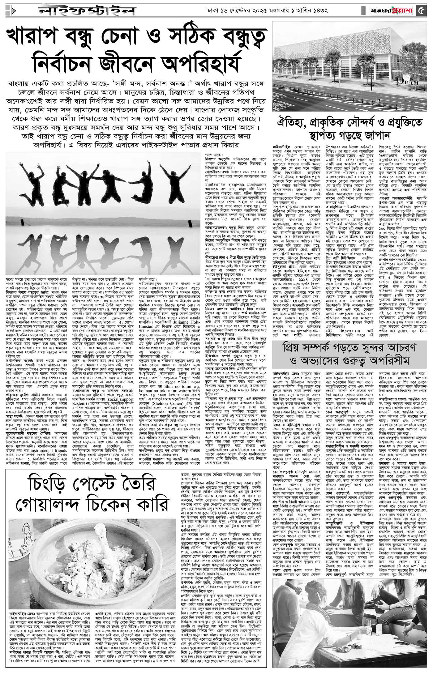 বর্ষ ৩৩ সংখ্যা ১৩৮ Page: 5 September 16, 2025 মঙ্গলবার ১৬ সেপ্টেম্বর ২০২৫ ঢাকা ১ আশ্বিন ১৪৩২ বঙ্গাব্দ ২২ রবিউল আউয়াল ১৪৪৭ রেজি.নং-ডিএ-১৩৯৯ Page 1Page 2Page 3Page 4Page 5Page 6Page 7Page 8 Thumbnails × বর্ষ ৩৩ সংখ্যা ১৩৮ পৃষ্ঠা-১।-প্রথম-পাতাপৃষ্ঠা-২।-দেশের-খবরপৃষ্ঠা-৩।-বিদেশের-খবরপৃষ্ঠা-৪।-উপ-সম্পাদকীয়-পৃষ্ঠা-৫।-লাইফস্টাইলপৃষ্ঠা-৬।-খেলাধুলাপৃষ্ঠা-৭।-খবরপৃষ্ঠা-৮।-শেষের-পাতা << First << 4 5 >> Last >> Hide পৃষ্ঠা-১।-প্রথম-পাতাপৃষ্ঠা-২।-দেশের-খবরপৃষ্ঠা-৩।-বিদেশের-খবরপৃষ্ঠা-৪।-উপ-সম্পাদকীয়-পৃষ্ঠা-৫।-লাইফস্টাইলপৃষ্ঠা-৬।-খেলাধুলাপৃষ্ঠা-৭।-খবরপৃষ্ঠা-৮।-শেষের-পাতা পৃষ্ঠা-৫।-লাইফস্টাইল