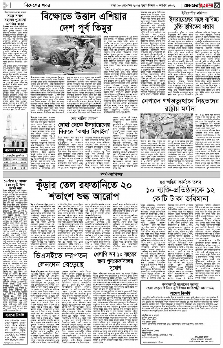 বর্ষ ৩৩ সংখ্যা ১৪০ Page: 3 September 18, 2025 বৃহস্পতিবার ১৮ সেপ্টেম্বর ২০২৫ ঢাকা ৩ আশ্বিন ১৪৩২ বঙ্গাব্দ ২৪ রবিউল আউয়াল ১৪৪৭ রেজি.নং-ডিএ-১৩৯৯ Page 1Page 2Page 3Page 4Page 5Page 6Page 7Page 8 Thumbnails × বর্ষ ৩৩ সংখ্যা ১৪০ পৃষ্ঠা-১।-প্রথম-পাতাপৃষ্ঠা-২।-দেশের-খবরপৃষ্ঠা-৩।-বিদেশের-খবরপৃষ্ঠা-৪।-উপ-সম্পাদকীয়-পৃষ্ঠা-৫।-নারী-ও-শিশুপৃষ্ঠা-৬।-খেলাধুলাপৃষ্ঠা-৭।-খবরপৃষ্ঠা-৮।-শেষের-পাতা << First << 2 3 >> Last >> Hide পৃষ্ঠা-১।-প্রথম-পাতাপৃষ্ঠা-২।-দেশের-খবরপৃষ্ঠা-৩।-বিদেশের-খবরপৃষ্ঠা-৪।-উপ-সম্পাদকীয়-পৃষ্ঠা-৫।-নারী-ও-শিশুপৃষ্ঠা-৬।-খেলাধুলাপৃষ্ঠা-৭।-খবরপৃষ্ঠা-৮।-শেষের-পাতা পৃষ্ঠা-৩।-বিদেশের-খবর