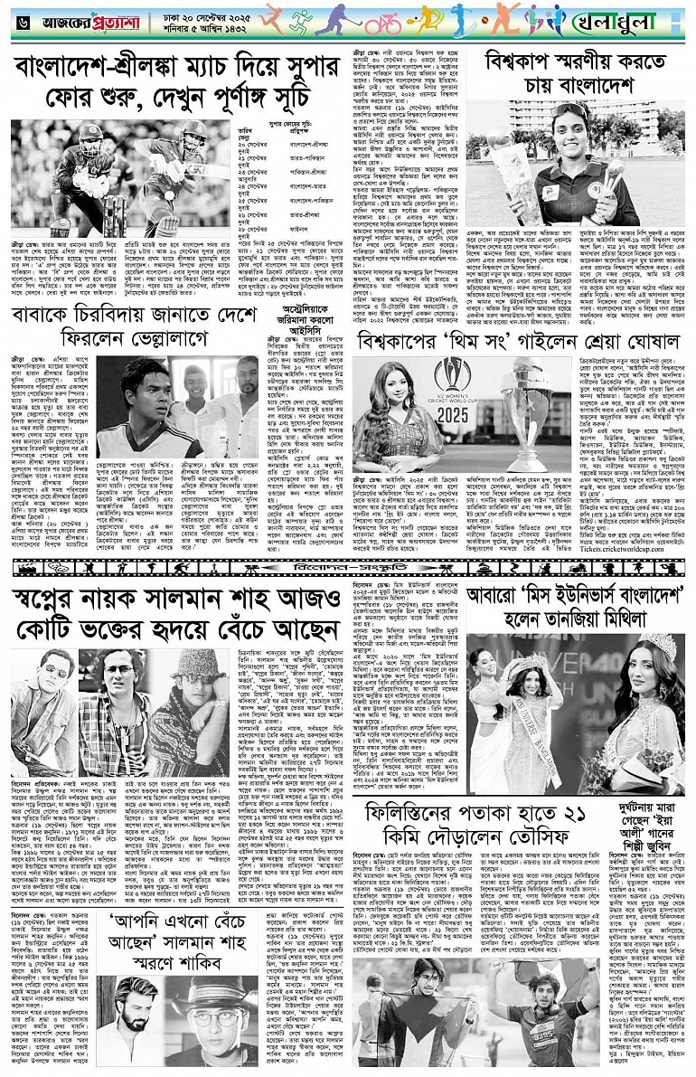 বর্ষ ৩৩ সংখ্যা ১৪২ Page: 6 September 20, 2025 শনিবার ২০ সেপ্টেম্বর ২০২৫ ঢাকা ৫ আশ্বিন ১৪৩২ বঙ্গাব্দ ২৬ রবিউল আউয়াল ১৪৪৭ রেজি.নং-ডিএ-১৩৯৯ Page 1Page 2Page 3Page 4Page 5Page 6Page 7Page 8 Thumbnails × বর্ষ ৩৩ সংখ্যা ১৪২ পৃষ্ঠা-১।-প্রথম-পাতাপৃষ্ঠা-২।-দেশের-খবরপৃষ্ঠা-৩।-বিদেশের-খবরপৃষ্ঠা-৪।-উপ-সম্পাদকীয়-পৃষ্ঠা-৫।-সাহিত্যপৃষ্ঠা-৬।-খেলাধুলাপৃষ্ঠা-৭।-খবরপৃষ্ঠা-৮।-শেষের-পাতা << First << 5 6 >> Last >> Hide পৃষ্ঠা-১।-প্রথম-পাতাপৃষ্ঠা-২।-দেশের-খবরপৃষ্ঠা-৩।-বিদেশের-খবরপৃষ্ঠা-৪।-উপ-সম্পাদকীয়-পৃষ্ঠা-৫।-সাহিত্যপৃষ্ঠা-৬।-খেলাধুলাপৃষ্ঠা-৭।-খবরপৃষ্ঠা-৮।-শেষের-পাতা পৃষ্ঠা-৬।-খেলাধুলা