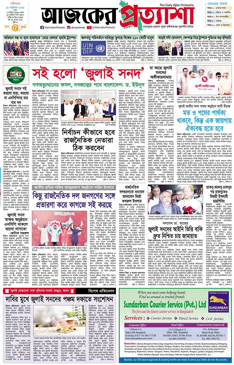 বর্ষ ৩৩ সংখ্যা ১৬৯ October 18, 2025 শনিবার ১৮ অক্টোবর ২০২৫ ঢাকা ২ কার্তিক ১৪৩২ বঙ্গাব্দ ২৫ রবিউস সানি ১৪৪৭ রেজি.নং-ডিএ-১৩৯৯ Page 1Page 2Page 3Page 4Page 5Page 6Page 7Page 8 Thumbnails × বর্ষ ৩৩ সংখ্যা ১৬৯ পৃষ্ঠা-১।-প্রথম-পাতাপৃষ্ঠা-২।-দেশের-খবরপৃষ্ঠা-৩।-বিদেশের-খবরপৃষ্ঠা-৪।-উপ-সম্পাদকীয়-পৃষ্ঠা-৫।-সাহিত্যপৃষ্ঠা-৬।-খেলাধুলাপৃষ্ঠা-৭।-খবরপৃষ্ঠা-৮।-শেষের-পাতা << First << 1 2 >> Last >> Hide পৃষ্ঠা-১।-প্রথম-পাতাপৃষ্ঠা-২।-দেশের-খবরপৃষ্ঠা-৩।-বিদেশের-খবরপৃষ্ঠা-৪।-উপ-সম্পাদকীয়-পৃষ্ঠা-৫।-সাহিত্যপৃষ্ঠা-৬।-খেলাধুলাপৃষ্ঠা-৭।-খবরপৃষ্ঠা-৮।-শেষের-পাতা পৃষ্ঠা-১।-প্রথম-পাতা