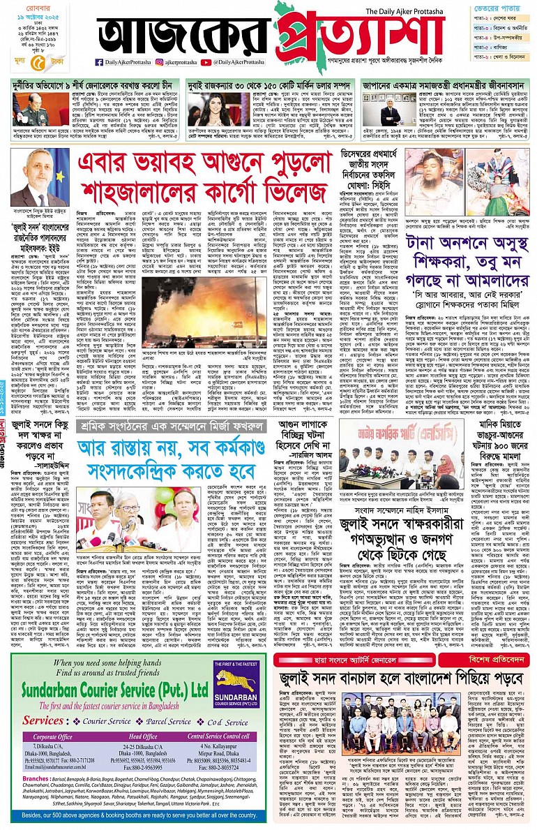 রোববার ১৯ অক্টোবর ২০২৫ ঢাকা ৩ কার্তিক ১৪৩২ বঙ্গাব্দ ২৬ রবিউস সানি ১৪৪৭ রেজি.নং-ডিএ-১৩৯৯