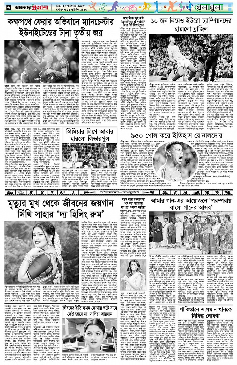 বর্ষ ৩৩ সংখ্যা ১৭৮ Page: 6 October 27, 2025 সোমবার ২৭ অক্টোবর ২০২৫ ঢাকা ১১ কার্তিক ১৪৩২ বঙ্গাব্দ ৪ জমাদিউল আউয়াল ১৪৪৭ রেজি.নং-ডিএ-১৩৯৯ Page 1Page 2Page 3Page 4Page 5Page 6Page 7Page 8 Thumbnails × বর্ষ ৩৩ সংখ্যা ১৭৮ পৃষ্ঠা-১।-প্রথম-পাতাপৃষ্ঠা-২।-দেশের-খবরপৃষ্ঠা-৩।-বিদেশের-খবরপৃষ্ঠা-৪।-উপ-সম্পাদকীয়-পৃষ্ঠা-৫।-বিজ্ঞান-ও-প্রযুক্তিপৃষ্ঠা-৬।-খেলাধুলাপৃষ্ঠা-৭।-খবরপৃষ্ঠা-৮।-শেষের-পাতা << First << 5 6 >> Last >> Hide পৃষ্ঠা-১।-প্রথম-পাতাপৃষ্ঠা-২।-দেশের-খবরপৃষ্ঠা-৩।-বিদেশের-খবরপৃষ্ঠা-৪।-উপ-সম্পাদকীয়-পৃষ্ঠা-৫।-বিজ্ঞান-ও-প্রযুক্তিপৃষ্ঠা-৬।-খেলাধুলাপৃষ্ঠা-৭।-খবরপৃষ্ঠা-৮।-শেষের-পাতা পৃষ্ঠা-৬।-খেলাধুলা