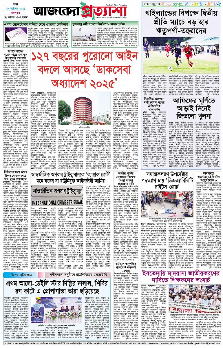বর্ষ ৩৩ সংখ্যা ১৭৯ Page: 8 October 28, 2025 মঙ্গলবার ২৮ অক্টোবর ২০২৫ ঢাকা ১২ কার্তিক ১৪৩২ বঙ্গাব্দ ৫ জমাদিউল আউয়াল ১৪৪৭ রেজি.নং-ডিএ-১৩৯৯ Page 1Page 2Page 3Page 4Page 5Page 6Page 7Page 8 Thumbnails × বর্ষ ৩৩ সংখ্যা ১৭৯ পৃষ্ঠা-১।-প্রথম-পাতাপৃষ্ঠা-২।-দেশের-খবরপৃষ্ঠা-৩।-বিদেশের-খবরপৃষ্ঠা-৪।-উপ-সম্পাদকীয়-পৃষ্ঠা-৫।-লাইফস্টাইলপৃষ্ঠা-৬।-খেলাধুলাপৃষ্ঠা-৭।-খবরপৃষ্ঠা-৮।-শেষের-পাতা << First << 7 8 >> Last >> Hide পৃষ্ঠা-১।-প্রথম-পাতাপৃষ্ঠা-২।-দেশের-খবরপৃষ্ঠা-৩।-বিদেশের-খবরপৃষ্ঠা-৪।-উপ-সম্পাদকীয়-পৃষ্ঠা-৫।-লাইফস্টাইলপৃষ্ঠা-৬।-খেলাধুলাপৃষ্ঠা-৭।-খবরপৃষ্ঠা-৮।-শেষের-পাতা পৃষ্ঠা-৮।-শেষের-পাতা