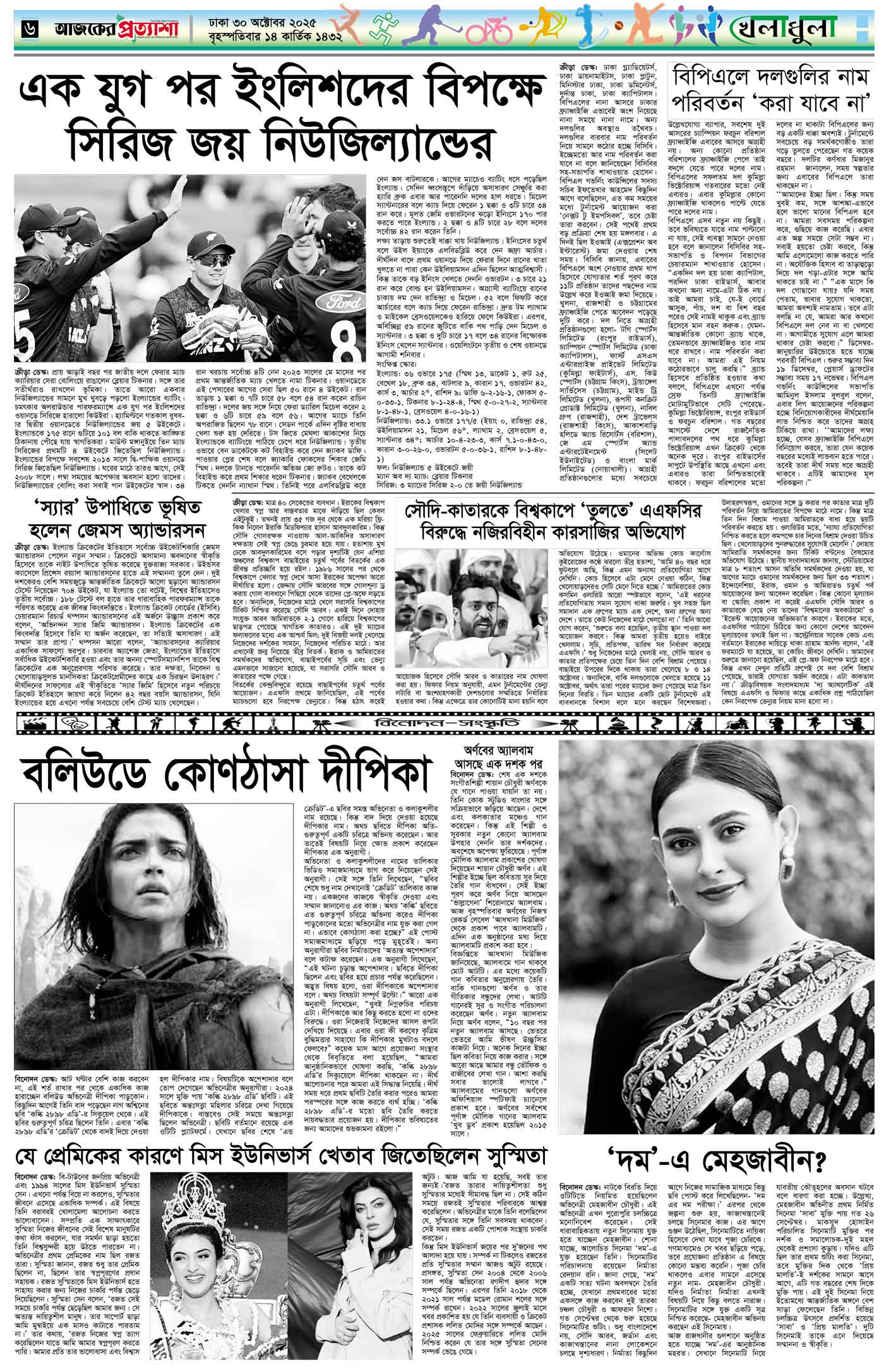 বর্ষ ৩৩ সংখ্যা ১৮১ Page: 6 October 30, 2025 বৃহস্পতিবার ৩০ অক্টোবর ২০২৫ ঢাকা ১৪ কার্তিক ১৪৩২ বঙ্গাব্দ ৭ জমাদিউল আউয়াল ১৪৪৭ রেজি.নং-ডিএ-১৩৯৯ Page 1Page 2Page 3Page 4Page 5Page 6Page 7Page 8 Thumbnails × বর্ষ ৩৩ সংখ্যা ১৮১ পৃষ্ঠা-১।-প্রথম-পাতাপৃষ্ঠা-২।-দেশের-খবরপৃষ্ঠা-৩।-বিদেশের-খবরপৃষ্ঠা-৪।-উপ-সম্পাদকীয়-পৃষ্ঠা-৫।-নারী-ও-শিশুপৃষ্ঠা-৬।-খেলাধুলাপৃষ্ঠা-৭।-খবরপৃষ্ঠা-৮।-শেষের-পাতা << First << 5 6 >> Last >> Hide পৃষ্ঠা-১।-প্রথম-পাতাপৃষ্ঠা-২।-দেশের-খবরপৃষ্ঠা-৩।-বিদেশের-খবরপৃষ্ঠা-৪।-উপ-সম্পাদকীয়-পৃষ্ঠা-৫।-নারী-ও-শিশুপৃষ্ঠা-৬।-খেলাধুলাপৃষ্ঠা-৭।-খবরপৃষ্ঠা-৮।-শেষের-পাতা পৃষ্ঠা-৬।-খেলাধুলা