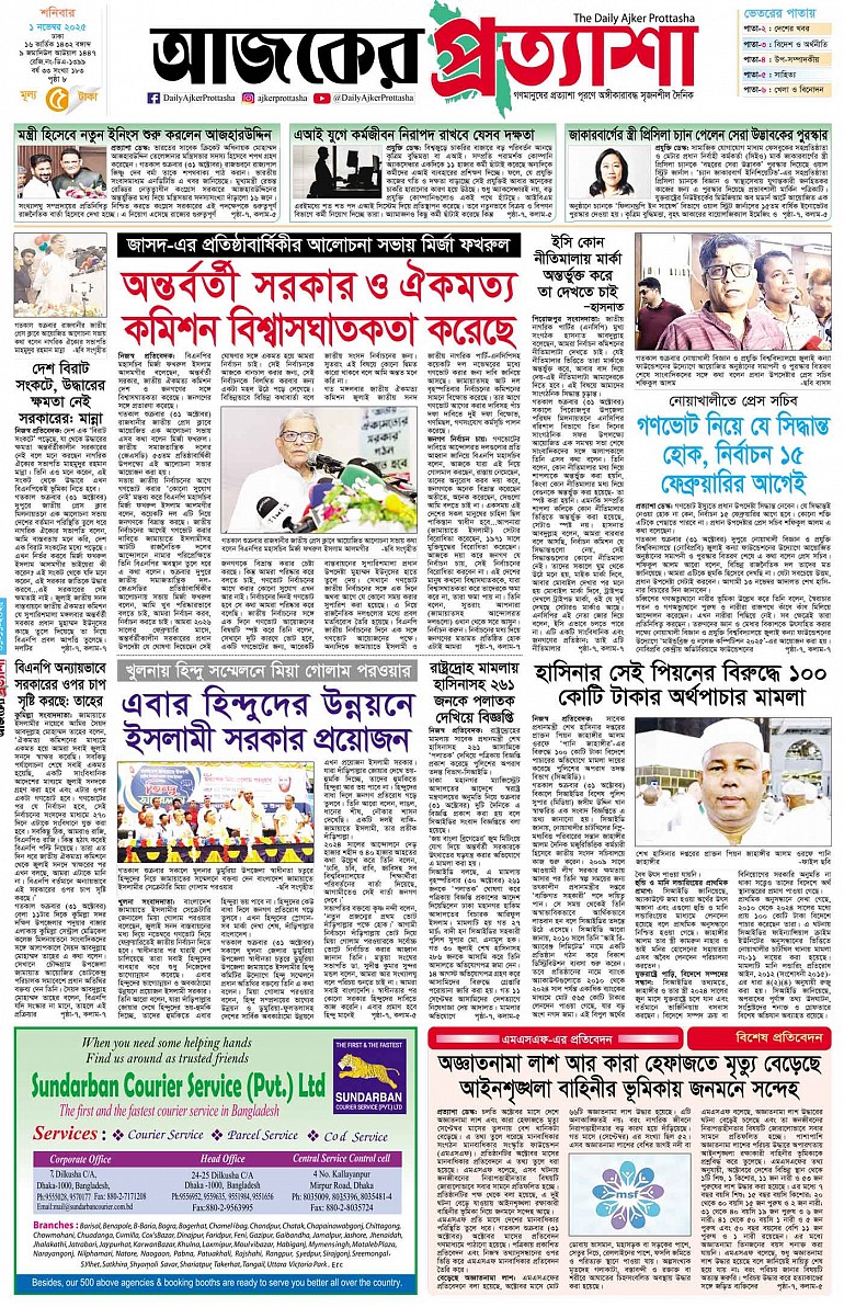 শনিবার ১ নভেম্বর ২০২৫ ঢাকা ১৬ কার্তিক ১৪৩২ বঙ্গাব্দ ৯ জমাদিউল আউয়াল ১৪৪৭ রেজি.নং-ডিএ-১৩৯৯