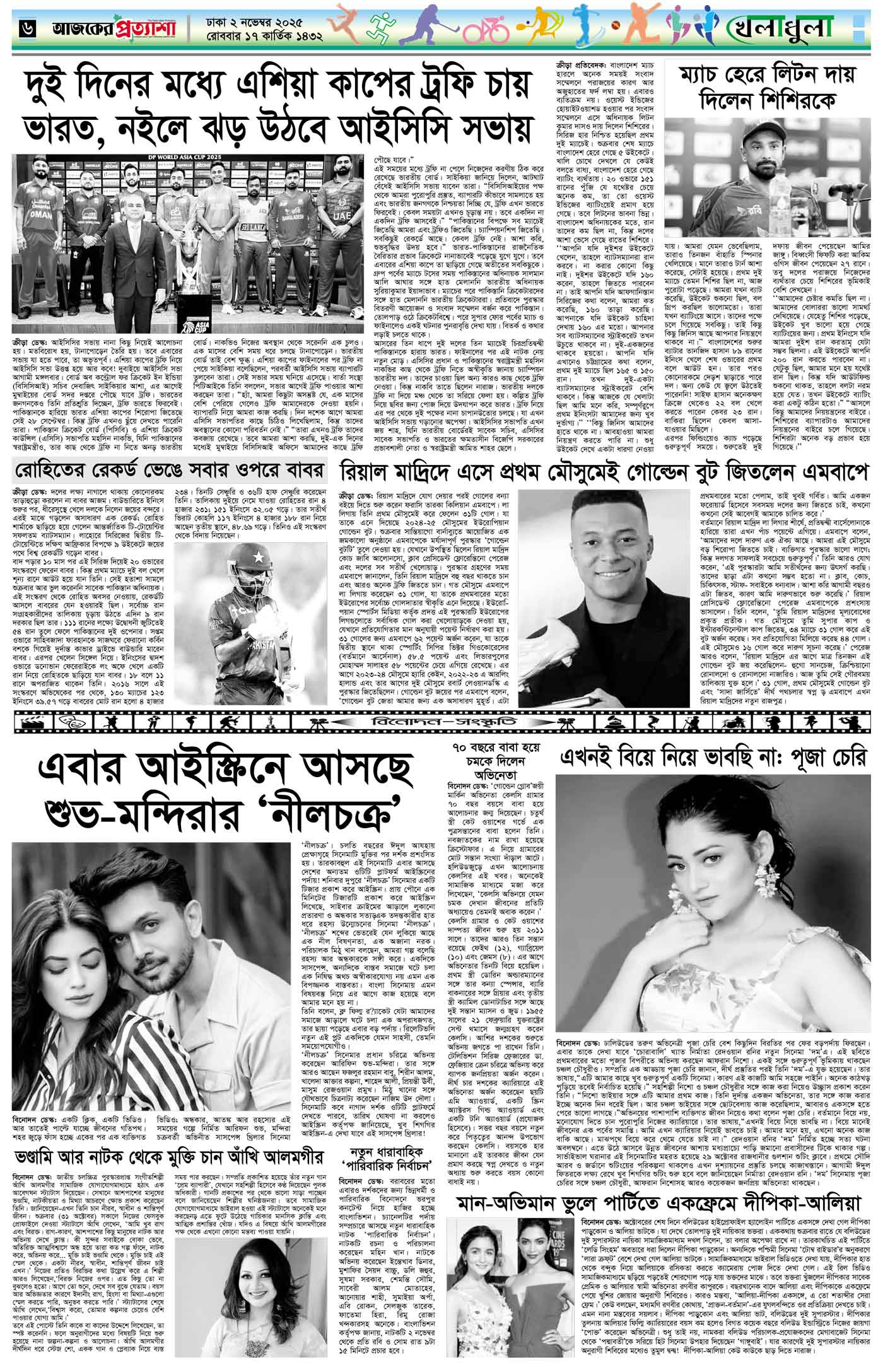 বর্ষ ৩৩ সংখ্যা ১৮৪ Page: 6 November 02, 2025 রোববার ২ নভেম্বর ২০২৫ ঢাকা ১৭ কার্তিক ১৪৩২ বঙ্গাব্দ ১০ জমাদিউল আউয়াল ১৪৪৭ রেজি.নং-ডিএ-১৩৯৯ Page 1Page 2Page 3Page 4Page 5Page 6Page 7Page 8 Thumbnails × বর্ষ ৩৩ সংখ্যা ১৮৪ পৃষ্ঠা-১।-প্রথম-পাতাপৃষ্ঠা-২।-দেশের-খবরপৃষ্ঠা-৩।-বিদেশের-খবরপৃষ্ঠা-৪।-উপ-সম্পাদকীয়-পৃষ্ঠা-৫।-বাণিজ্যপৃষ্ঠা-৬।-খেলাধুলাপৃষ্ঠা-৭।-খবরপৃষ্ঠা-৮।-শেষের-পাতা << First << 5 6 >> Last >> Hide পৃষ্ঠা-১।-প্রথম-পাতাপৃষ্ঠা-২।-দেশের-খবরপৃষ্ঠা-৩।-বিদেশের-খবরপৃষ্ঠা-৪।-উপ-সম্পাদকীয়-পৃষ্ঠা-৫।-বাণিজ্যপৃষ্ঠা-৬।-খেলাধুলাপৃষ্ঠা-৭।-খবরপৃষ্ঠা-৮।-শেষের-পাতা পৃষ্ঠা-৬।-খেলাধুলা