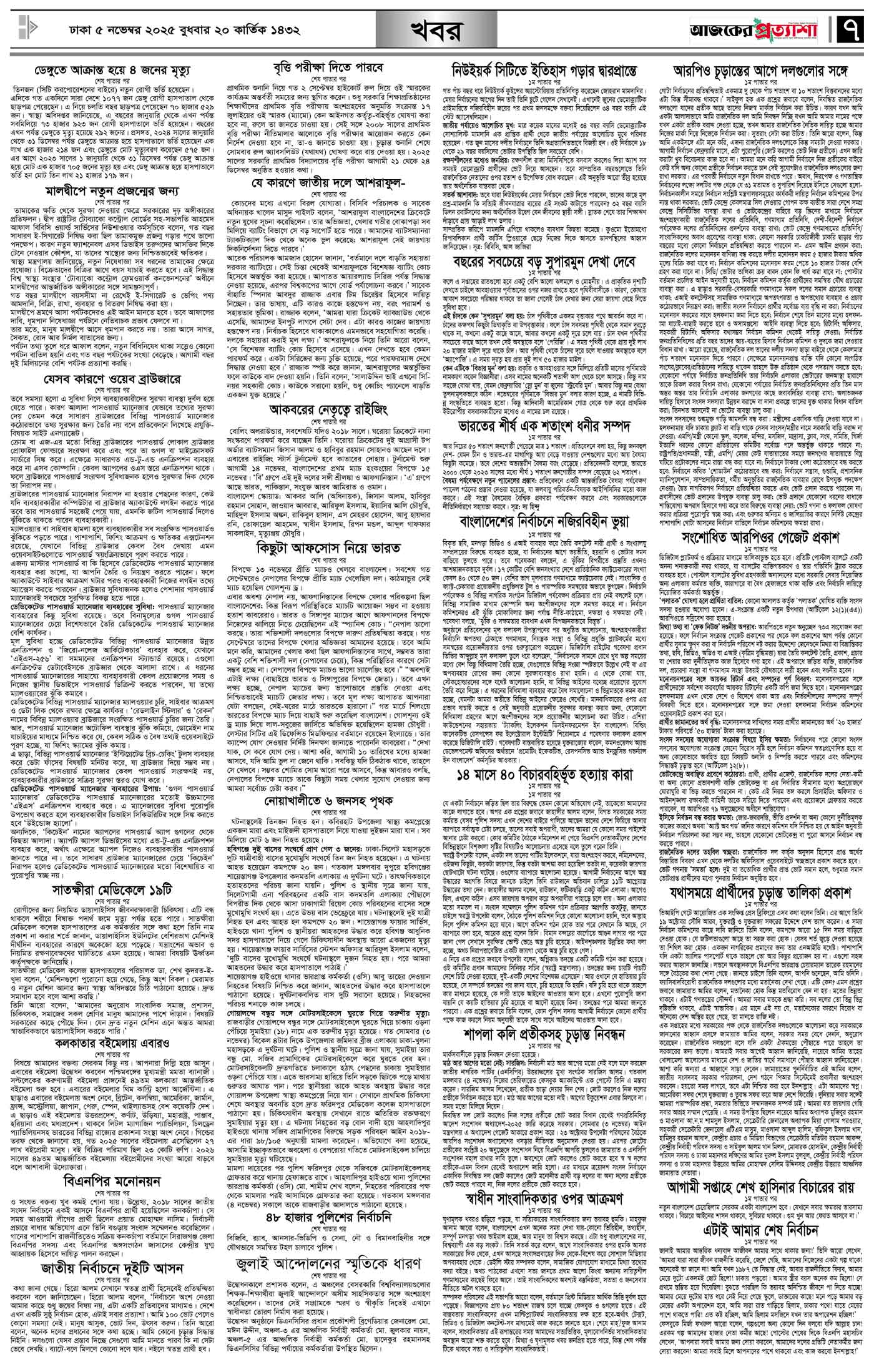 বর্ষ ৩৩ সংখ্যা ১৮৭ Page: 7 November 05, 2025 বুধবার ৫ নভেম্বর ২০২৫ ঢাকা ২০ কার্তিক ১৪৩২ বঙ্গাব্দ ১৩ জমাদিউল আউয়াল ১৪৪৭ রেজি.নং-ডিএ-১৩৯৯ Page 1Page 2Page 3Page 4Page 5Page 6Page 7Page 8 Thumbnails × বর্ষ ৩৩ সংখ্যা ১৮৭ পৃষ্ঠা-১।-প্রথম-পাতাপৃষ্ঠা-২।-দেশের-খবরপৃষ্ঠা-৩।-বিদেশের-খবরপৃষ্ঠা-৪।-উপ-সম্পাদকীয়-পৃষ্ঠা-৫।-স্বাস্থ-ও-পরিচর্যাপৃষ্ঠা-৬।-খেলাধুলাপৃষ্ঠা-৭।-খবরপৃষ্ঠা-৮।-শেষের-পাতা << First << 6 7 >> Last >> Hide পৃষ্ঠা-১।-প্রথম-পাতাপৃষ্ঠা-২।-দেশের-খবরপৃষ্ঠা-৩।-বিদেশের-খবরপৃষ্ঠা-৪।-উপ-সম্পাদকীয়-পৃষ্ঠা-৫।-স্বাস্থ-ও-পরিচর্যাপৃষ্ঠা-৬।-খেলাধুলাপৃষ্ঠা-৭।-খবরপৃষ্ঠা-৮।-শেষের-পাতা পৃষ্ঠা-৭।-খবর