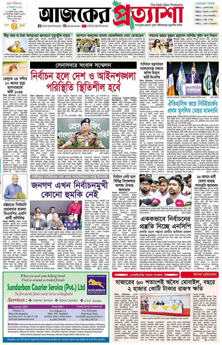 বৃহস্পতিবার ৬ নভেম্বর ২০২৫ ঢাকা ২১ কার্তিক ১৪৩২ বঙ্গাব্দ ১৪ জমাদিউল আউয়াল ১৪৪৭ রেজি.নং-ডিএ-১৩৯৯