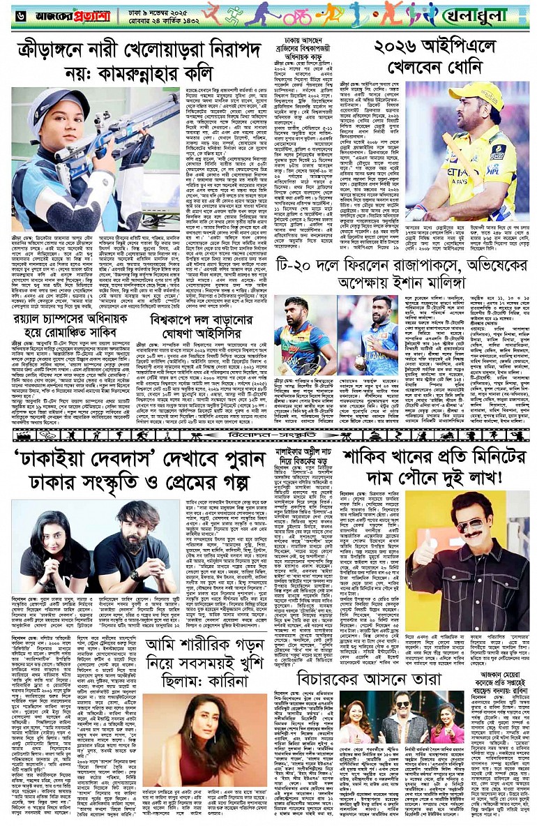 বর্ষ ৩৩ সংখ্যা ১৯১ Page: 6 November 09, 2025 রবিবার ৯ নভেম্বর ২০২৫ ঢাকা ২৪ কার্তিক ১৪৩২ বঙ্গাব্দ ১৭ জমাদিউল আউয়াল ১৪৪৭ রেজি.নং-ডিএ-১৩৯৯ Page 1Page 2Page 3Page 4Page 5Page 6Page 7Page 8 Thumbnails × বর্ষ ৩৩ সংখ্যা ১৯১ পৃষ্ঠা-১।-প্রথম-পাতাপৃষ্ঠা-২।-দেশের-খবরপৃষ্ঠা-৩।-বিদেশের-খবরপৃষ্ঠা-৪।-উপ-সম্পাদকীয়-পৃষ্ঠা-৫।-বাণিজ্যপৃষ্ঠা-৬।-খেলাধুলাপৃষ্ঠা-৭।-খবরপৃষ্ঠা-৮।-শেষের-পাতা << First << 5 6 >> Last >> Hide পৃষ্ঠা-১।-প্রথম-পাতাপৃষ্ঠা-২।-দেশের-খবরপৃষ্ঠা-৩।-বিদেশের-খবরপৃষ্ঠা-৪।-উপ-সম্পাদকীয়-পৃষ্ঠা-৫।-বাণিজ্যপৃষ্ঠা-৬।-খেলাধুলাপৃষ্ঠা-৭।-খবরপৃষ্ঠা-৮।-শেষের-পাতা পৃষ্ঠা-৬।-খেলাধুলা