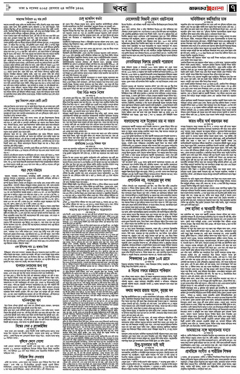 বর্ষ ৩৩ সংখ্যা ১৯১ Page: 7 November 09, 2025 রবিবার ৯ নভেম্বর ২০২৫ ঢাকা ২৪ কার্তিক ১৪৩২ বঙ্গাব্দ ১৭ জমাদিউল আউয়াল ১৪৪৭ রেজি.নং-ডিএ-১৩৯৯ Page 1Page 2Page 3Page 4Page 5Page 6Page 7Page 8 Thumbnails × বর্ষ ৩৩ সংখ্যা ১৯১ পৃষ্ঠা-১।-প্রথম-পাতাপৃষ্ঠা-২।-দেশের-খবরপৃষ্ঠা-৩।-বিদেশের-খবরপৃষ্ঠা-৪।-উপ-সম্পাদকীয়-পৃষ্ঠা-৫।-বাণিজ্যপৃষ্ঠা-৬।-খেলাধুলাপৃষ্ঠা-৭।-খবরপৃষ্ঠা-৮।-শেষের-পাতা << First << 6 7 >> Last >> Hide পৃষ্ঠা-১।-প্রথম-পাতাপৃষ্ঠা-২।-দেশের-খবরপৃষ্ঠা-৩।-বিদেশের-খবরপৃষ্ঠা-৪।-উপ-সম্পাদকীয়-পৃষ্ঠা-৫।-বাণিজ্যপৃষ্ঠা-৬।-খেলাধুলাপৃষ্ঠা-৭।-খবরপৃষ্ঠা-৮।-শেষের-পাতা পৃষ্ঠা-৭।-খবর