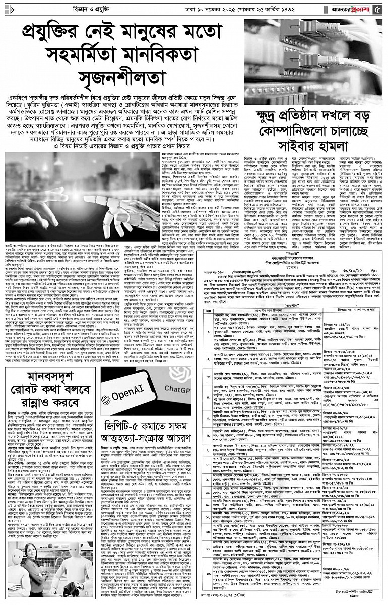 বর্ষ ৩৩ সংখ্যা ১৯২ Page: 5 November 10, 2025 সোমবার ১০ নভেম্বর ২০২৫ ঢাকা ২৫ কার্তিক ১৪৩২ বঙ্গাব্দ ১৮ জমাদিউল আউয়াল ১৪৪৭ রেজি.নং-ডিএ-১৩৯৯ Page 1Page 2Page 3Page 4Page 5Page 6Page 7Page 8 Thumbnails × বর্ষ ৩৩ সংখ্যা ১৯২ পৃষ্ঠা-১।-প্রথম-পাতাপৃষ্ঠা-২।-দেশের-খবরপৃষ্ঠা-৩।-বিদেশের-খবরপৃষ্ঠা-৪।-উপ-সম্পাদকীয়-পৃষ্ঠা-৫।-বিজ্ঞান-ও-প্রযুক্তিপৃষ্ঠা-৬।-খেলাধুলাপৃষ্ঠা-৭।-খবরপৃষ্ঠা-৮।-শেষের-পাতা << First << 4 5 >> Last >> Hide পৃষ্ঠা-১।-প্রথম-পাতাপৃষ্ঠা-২।-দেশের-খবরপৃষ্ঠা-৩।-বিদেশের-খবরপৃষ্ঠা-৪।-উপ-সম্পাদকীয়-পৃষ্ঠা-৫।-বিজ্ঞান-ও-প্রযুক্তিপৃষ্ঠা-৬।-খেলাধুলাপৃষ্ঠা-৭।-খবরপৃষ্ঠা-৮।-শেষের-পাতা পৃষ্ঠা-৫।-বিজ্ঞান-ও-প্রযুক্তি