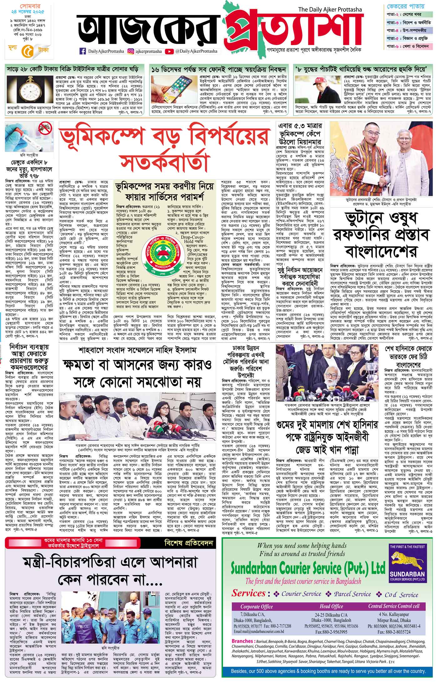 সোমবার ২৪ নভেম্বর ২০২৫ ঢাকা ৯ অগ্রহায়ণ ১৪৩২ বঙ্গাব্দ ২ জমাদিউস সানি ১৪৪৭ রেজি.নং-ডিএ-১৩৯৯