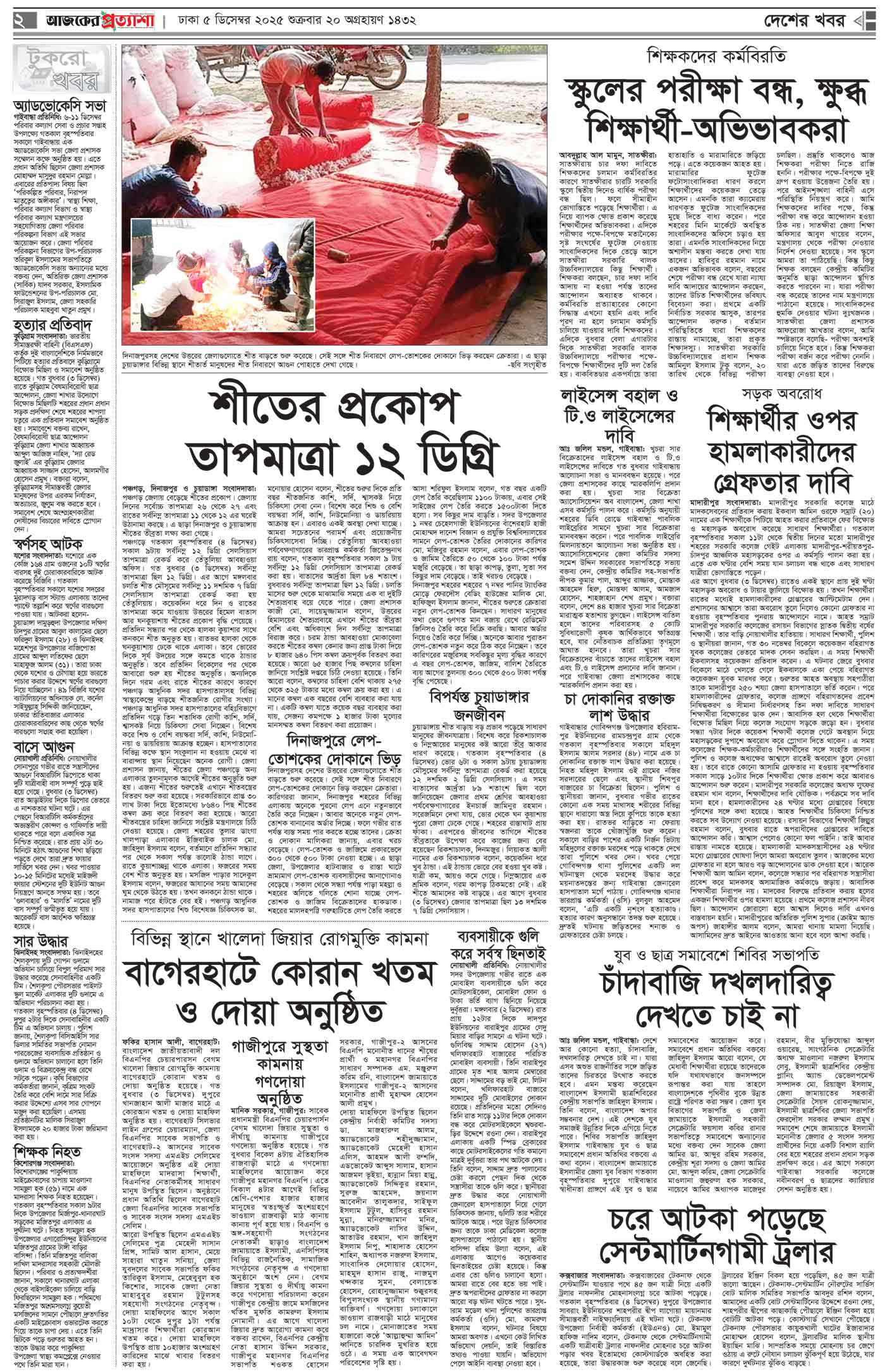 শুক্রবার ৫ ডিসেম্বর ২০২৫ ঢাকা ২০ অগ্রহায়ণ ১৪৩২ বঙ্গাব্দ ১৩ জমাদিউস সানি ১৪৪৭ রেজি.নং-ডিএ-১৩৯৯