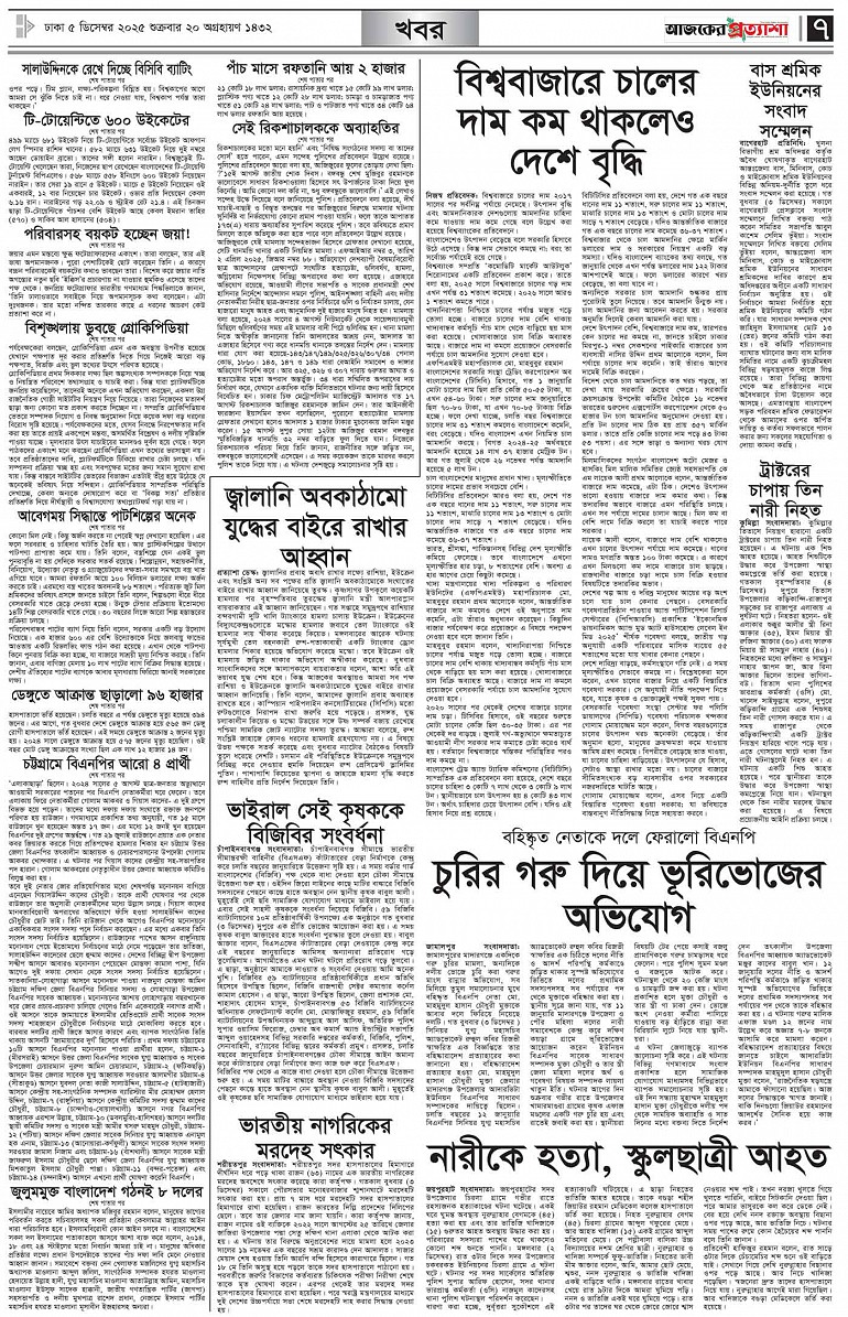 বর্ষ ৩৩ সংখ্যা ২১৭ Page: 4 December 05, 2025 শুক্রবার ৫ ডিসেম্বর ২০২৫ ঢাকা ২০ অগ্রহায়ণ ১৪৩২ বঙ্গাব্দ ১৩ জমাদিউস সানি ১৪৪৭ রেজি.নং-ডিএ-১৩৯৯ Page 1Page 2Page 3Page 4Page 5 Thumbnails × বর্ষ ৩৩ সংখ্যা ২১৭ পৃষ্ঠা-২।-দেশের-খবরপৃষ্ঠা-৩।-বিদেশের-খবরপৃষ্ঠা-৪।-উপ-সম্পাদকীয়-পৃষ্ঠা-৭।-খবরপৃষ্ঠা-৮।-শেষের-পাতা << First << 3 4 >> Last >> Hide পৃষ্ঠা-২।-দেশের-খবরপৃষ্ঠা-৩।-বিদেশের-খবরপৃষ্ঠা-৪।-উপ-সম্পাদকীয়-পৃষ্ঠা-৭।-খবরপৃষ্ঠা-৮।-শেষের-পাতা পৃষ্ঠা-৭।-খবর