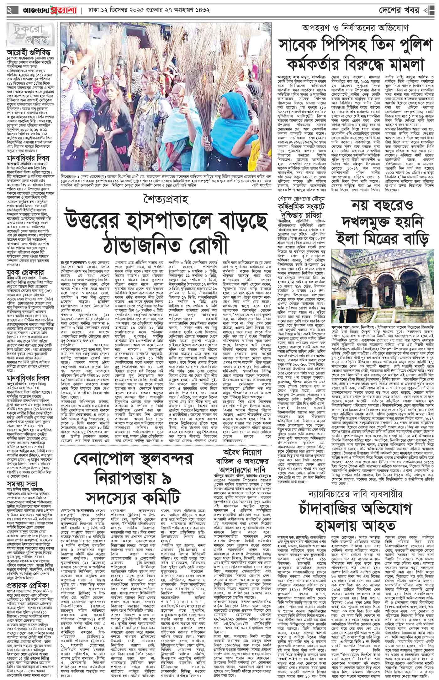ঢাকা ১২ ডিসেম্বর ২০২৫ শুক্রবার ২৭ অগ্রহায়ণ ১৪৩২ ২০ জমাদিউস সানি ১৪৪৭ রেজি.নং-ডিএ-১৩৯৯