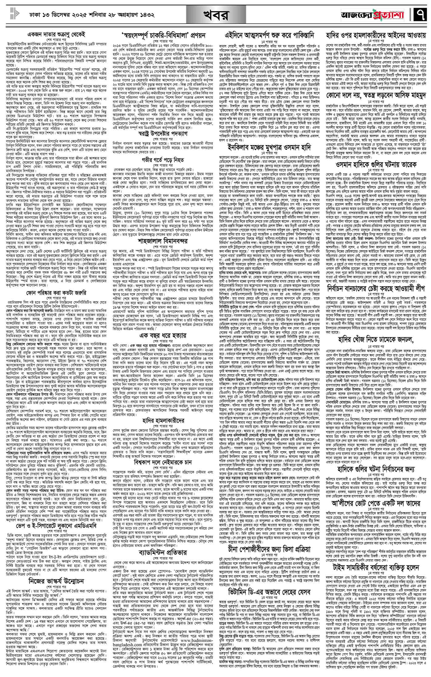 বর্ষ ৩৩ সংখ্যা ২২৫ Page: 7 December 13, 2025 শনিবার ১৩ ডিসেম্বর ২০২৫ ঢাকা ২৮ অগ্রহায়ণ ১৪৩২ বঙ্গাব্দ ২১ জমাদিউস সানি ১৪৪৭ রেজি.নং-ডিএ-১৩৯৯ Page 1Page 2Page 3Page 4Page 5Page 6Page 7Page 8 Thumbnails × বর্ষ ৩৩ সংখ্যা ২২৫ পৃষ্ঠা-১।-প্রথম-পাতাপৃষ্ঠা-২।-দেশের-খবরপৃষ্ঠা-৩।-বিদেশের-খবরপৃষ্ঠা-৪।-উপ-সম্পাদকীয়-পৃষ্ঠা-৫।-সাহিত্যপৃষ্ঠা-৬।-খেলাধুলাপৃষ্ঠা-৭।-খবরপৃষ্ঠা-৮।-শেষের-পাতা << First << 6 7 >> Last >> Hide পৃষ্ঠা-১।-প্রথম-পাতাপৃষ্ঠা-২।-দেশের-খবরপৃষ্ঠা-৩।-বিদেশের-খবরপৃষ্ঠা-৪।-উপ-সম্পাদকীয়-পৃষ্ঠা-৫।-সাহিত্যপৃষ্ঠা-৬।-খেলাধুলাপৃষ্ঠা-৭।-খবরপৃষ্ঠা-৮।-শেষের-পাতা পৃষ্ঠা-৭।-খবর