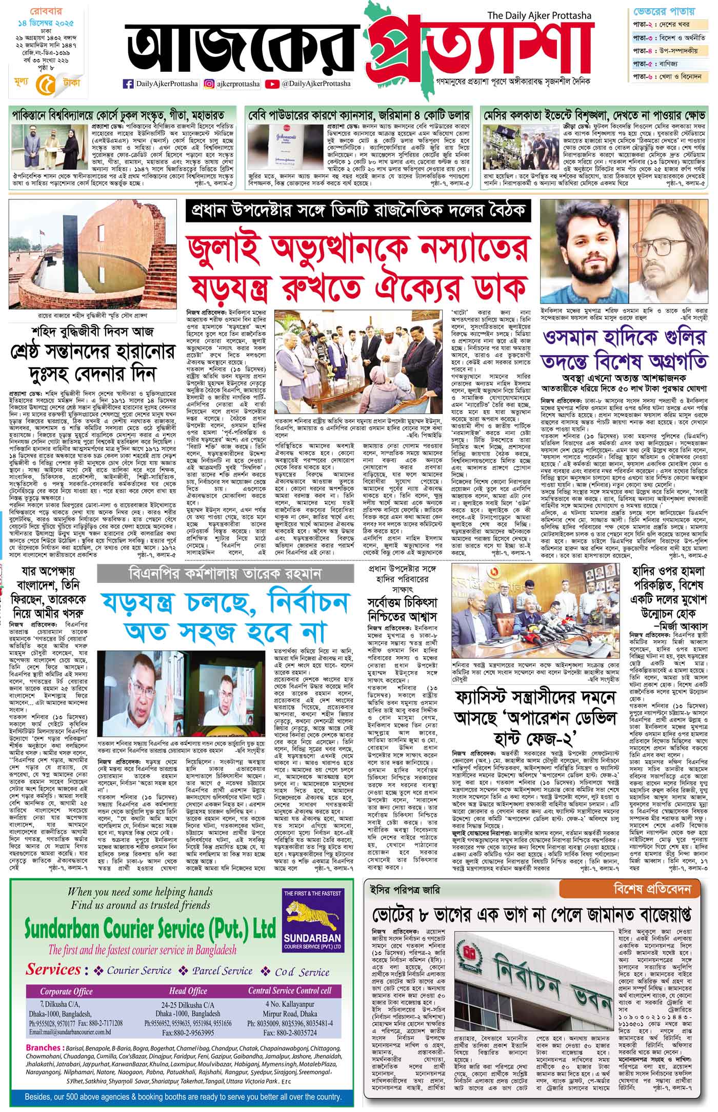 বর্ষ ৩৩ সংখ্যা ২২৬ December 14, 2025 রোববার ১৪ ডিসেম্বর ২০২৫ ঢাকা ২৯ অগ্রহায়ণ ১৪৩২ বঙ্গাব্দ ২২ জমাদিউস সানি ১৪৪৭ রেজি.নং-ডিএ-১৩৯৯ Page 1Page 2Page 3Page 4Page 5Page 6Page 7Page 8 Thumbnails × বর্ষ ৩৩ সংখ্যা ২২৬ পৃষ্ঠা-১।-প্রথম-পাতাপৃষ্ঠা-২।-দেশের-খবরপৃষ্ঠা-৩।-বিদেশের-খবরপৃষ্ঠা-৪।-উপ-সম্পাদকীয়-পৃষ্ঠা-৫।-বাণিজ্যপৃষ্ঠা-৬।-খেলাধুলাপৃষ্ঠা-৭।-খবরপৃষ্ঠা-৮।-শেষের-পাতা << First << 1 2 >> Last >> Hide পৃষ্ঠা-১।-প্রথম-পাতাপৃষ্ঠা-২।-দেশের-খবরপৃষ্ঠা-৩।-বিদেশের-খবরপৃষ্ঠা-৪।-উপ-সম্পাদকীয়-পৃষ্ঠা-৫।-বাণিজ্যপৃষ্ঠা-৬।-খেলাধুলাপৃষ্ঠা-৭।-খবরপৃষ্ঠা-৮।-শেষের-পাতা পৃষ্ঠা-১।-প্রথম-পাতা
