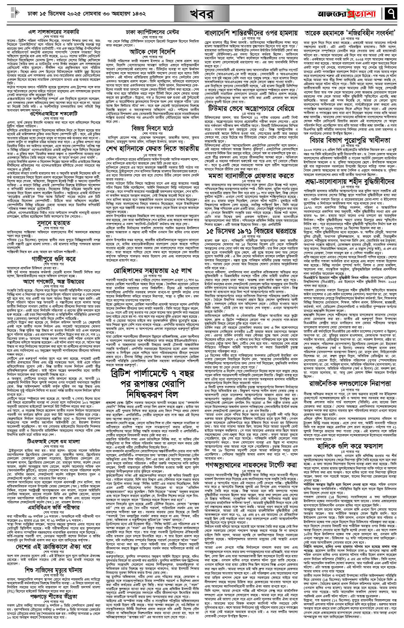 বর্ষ ৩৩ সংখ্যা ২২৭ Page: 7 December 15, 2025 সোমবার ১৫ ডিসেম্বর ২০২৫ ঢাকা ৩০ অগ্রহায়ণ ১৪৩২ বঙ্গাব্দ ২৩ জমাদিউস সানি ১৪৪৭ রেজি.নং-ডিএ-১৩৯৯ Page 1Page 2Page 3Page 4Page 5Page 6Page 7Page 8 Thumbnails × বর্ষ ৩৩ সংখ্যা ২২৭ পৃষ্ঠা-১।-প্রথম-পাতাপৃষ্ঠা-২।-দেশের-খবরপৃষ্ঠা-৩।-বিদেশের-খবরপৃষ্ঠা-৪।-উপ-সম্পাদকীয়-পৃষ্ঠা-৫।-কৃষি-ও-কৃষকপৃষ্ঠা-৬।-খেলাধুলাপৃষ্ঠা-৭।-খবরপৃষ্ঠা-৮।-শেষের-পাতা << First << 6 7 >> Last >> Hide পৃষ্ঠা-১।-প্রথম-পাতাপৃষ্ঠা-২।-দেশের-খবরপৃষ্ঠা-৩।-বিদেশের-খবরপৃষ্ঠা-৪।-উপ-সম্পাদকীয়-পৃষ্ঠা-৫।-কৃষি-ও-কৃষকপৃষ্ঠা-৬।-খেলাধুলাপৃষ্ঠা-৭।-খবরপৃষ্ঠা-৮।-শেষের-পাতা পৃষ্ঠা-৭।-খবর