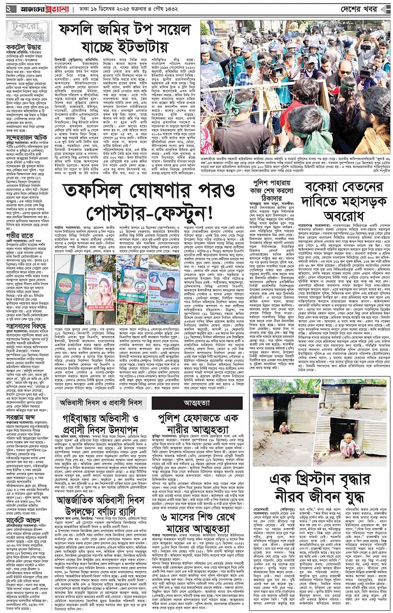 শুক্রবার ১৯ ডিসেম্বর ২০২৫ ঢাকা ৪ পৌষ ১৪৩২ বঙ্গাব্দ ২৭ জমাদিউস সানি ১৪৪৭ রেজি.নং-ডিএ-১৩৯৯