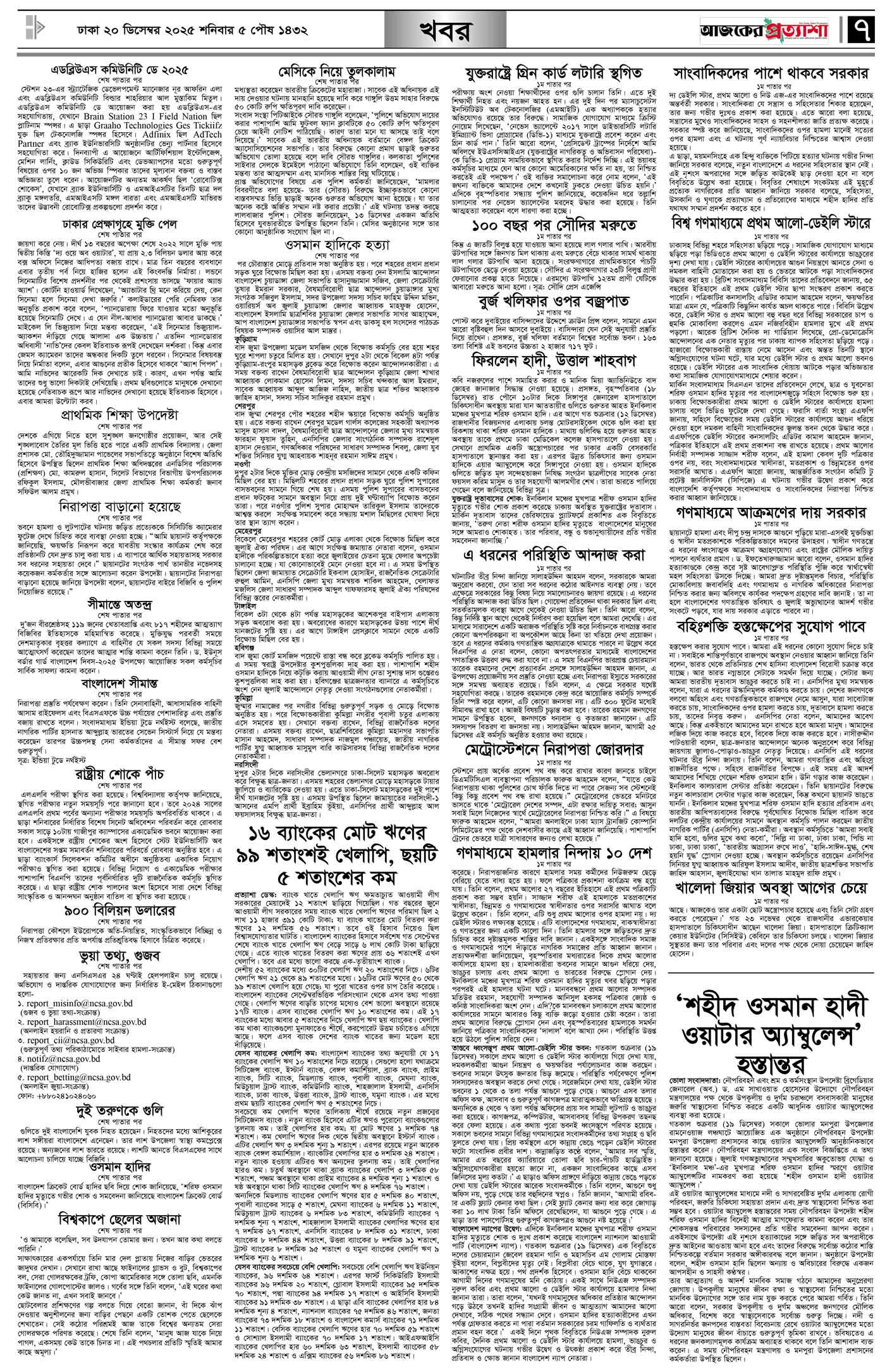 বর্ষ ৩৩ সংখ্যা ২৩১ Page: 7 December 20, 2025 শনিবার ২০ ডিসেম্বর ২০২৫ ঢাকা ৫ পৌষ ১৪৩২ বঙ্গাব্দ ২৮ জমাদিউস সানি ১৪৪৭ রেজি.নং-ডিএ-১৩৯৯ Page 1Page 2Page 3Page 4Page 5Page 6Page 7Page 8 Thumbnails × বর্ষ ৩৩ সংখ্যা ২৩১ পৃষ্ঠা-১।-প্রথম-পাতাপৃষ্ঠা-২।-দেশের-খবরপৃষ্ঠা-৩।-বিদেশের-খবরপৃষ্ঠা-৪।-উপ-সম্পাদকীয়-পৃষ্ঠা-৫।-সাহিত্যপৃষ্ঠা-৬।-খেলাধুলাপৃষ্ঠা-৭।-খবরপৃষ্ঠা-৮।-শেষের-পাতা << First << 6 7 >> Last >> Hide পৃষ্ঠা-১।-প্রথম-পাতাপৃষ্ঠা-২।-দেশের-খবরপৃষ্ঠা-৩।-বিদেশের-খবরপৃষ্ঠা-৪।-উপ-সম্পাদকীয়-পৃষ্ঠা-৫।-সাহিত্যপৃষ্ঠা-৬।-খেলাধুলাপৃষ্ঠা-৭।-খবরপৃষ্ঠা-৮।-শেষের-পাতা পৃষ্ঠা-৭।-খবর