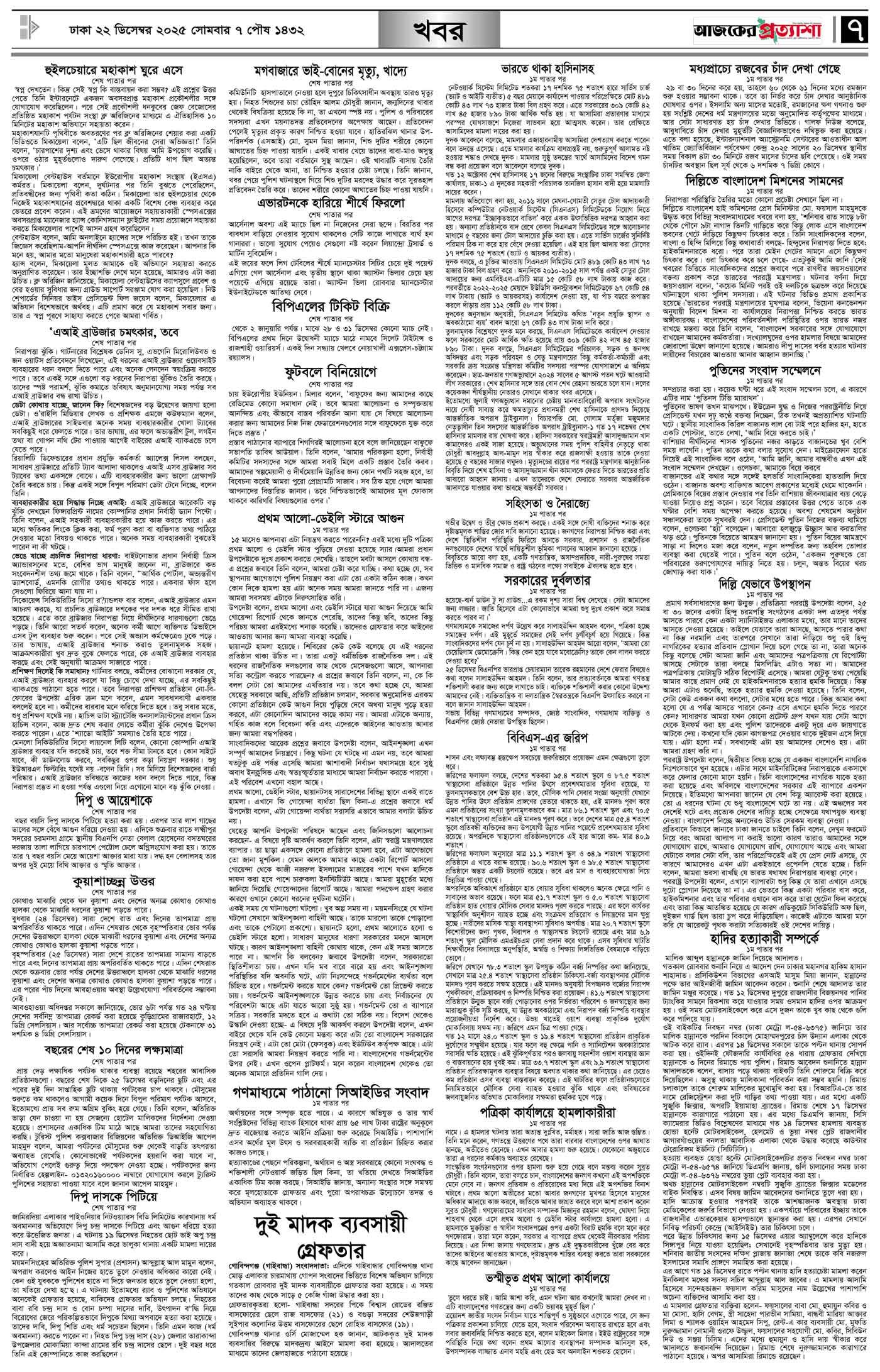 বর্ষ ৩৩ সংখ্যা ২৩২ Page: 7 December 22, 2025 সোমবার ২২ ডিসেম্বর ২০২৫ ঢাকা ৭ পৌষ ১৪৩২ বঙ্গাব্দ ১ রজব ১৪৪৭ রেজি.নং-ডিএ-১৩৯৯ Page 1Page 2Page 3Page 4Page 5Page 6Page 7Page 8 Thumbnails × বর্ষ ৩৩ সংখ্যা ২৩২ পৃষ্ঠা-১।-প্রথম-পাতাপৃষ্ঠা-২।-দেশের-খবরপৃষ্ঠা-৩।-বিদেশের-খবরপৃষ্ঠা-৪।-উপ-সম্পাদকীয়-পৃষ্ঠা-৫।-বিজ্ঞান-ও-প্রযুক্তিপৃষ্ঠা-৬।-খেলাধুলাপৃষ্ঠা-৭।-খবরপৃষ্ঠা-৮।-শেষের-পাতা << First << 6 7 >> Last >> Hide পৃষ্ঠা-১।-প্রথম-পাতাপৃষ্ঠা-২।-দেশের-খবরপৃষ্ঠা-৩।-বিদেশের-খবরপৃষ্ঠা-৪।-উপ-সম্পাদকীয়-পৃষ্ঠা-৫।-বিজ্ঞান-ও-প্রযুক্তিপৃষ্ঠা-৬।-খেলাধুলাপৃষ্ঠা-৭।-খবরপৃষ্ঠা-৮।-শেষের-পাতা পৃষ্ঠা-৭।-খবর