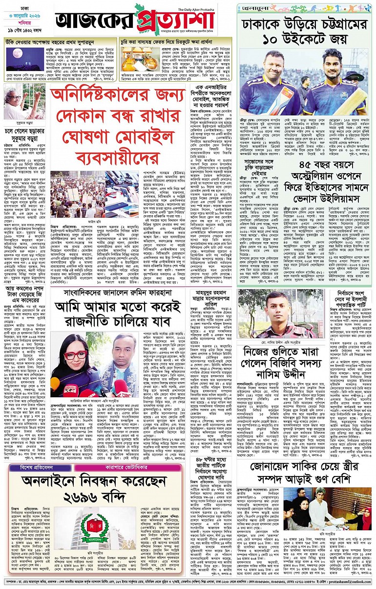 বর্ষ ৩৩ সংখ্যা ২৪৪ Page: 8 January 03, 2026 শনিবার ৩ জানুয়ারি ২০২৬ ঢাকা ১৯ পৌষ ১৪৩২ বঙ্গাব্দ ১৩ রজব ১৪৪৭ রেজি.নং-ডিএ-১৩৯৯ Page 1Page 2Page 3Page 4Page 5Page 6Page 7Page 8 Thumbnails × বর্ষ ৩৩ সংখ্যা ২৪৪ পৃষ্ঠা-১।-প্রথম-পাতাপৃষ্ঠা-২।-দেশের-খবরপৃষ্ঠা-৩।-বিদেশের-খবরপৃষ্ঠা-৪।-উপ-সম্পাদকীয়-পৃষ্ঠা-৫।-সাহিত্যপৃষ্ঠা-৬।-খেলাধুলাপৃষ্ঠা-৭।-খবরপৃষ্ঠা-৮।-শেষের-পাতা << First << 7 8 >> Last >> Hide পৃষ্ঠা-১।-প্রথম-পাতাপৃষ্ঠা-২।-দেশের-খবরপৃষ্ঠা-৩।-বিদেশের-খবরপৃষ্ঠা-৪।-উপ-সম্পাদকীয়-পৃষ্ঠা-৫।-সাহিত্যপৃষ্ঠা-৬।-খেলাধুলাপৃষ্ঠা-৭।-খবরপৃষ্ঠা-৮।-শেষের-পাতা পৃষ্ঠা-৮।-শেষের-পাতা