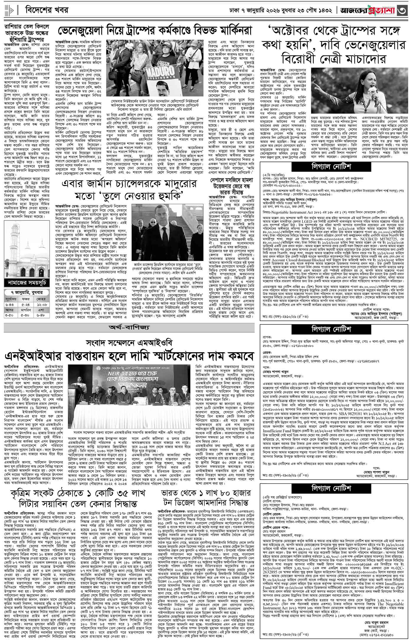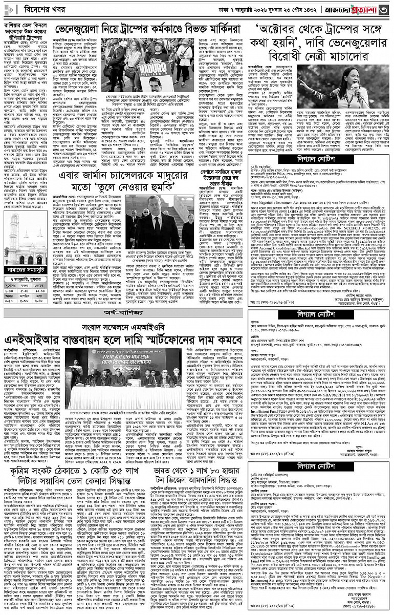 বর্ষ ৩৩ সংখ্যা ২৪৮ Page: 3 January 07, 2026 বুধবার ৭ জানুয়ারি ২০২৬ ঢাকা ২৩ পৌষ ১৪৩২ বঙ্গাব্দ ১৭ রজব ১৪৪৭ রেজি.নং-ডিএ-১৩৯৯ Page 1Page 2Page 3Page 4Page 5Page 6Page 7Page 8 Thumbnails × বর্ষ ৩৩ সংখ্যা ২৪৮ পৃষ্ঠা-১।-প্রথম-পাতাপৃষ্ঠা-২।-দেশের-খবরপৃষ্ঠা-৩।-বিদেশের-খবরপৃষ্ঠা-৪।-উপ-সম্পাদকীয়-পৃষ্ঠা-৫।-স্বাস্থ-ও-পরিচর্যাপৃষ্ঠা-৬।-খেলাধুলাপৃষ্ঠা-৭।-খবরপৃষ্ঠা-৮।-শেষের-পাতা << First << 2 3 >> Last >> Hide পৃষ্ঠা-১।-প্রথম-পাতাপৃষ্ঠা-২।-দেশের-খবরপৃষ্ঠা-৩।-বিদেশের-খবরপৃষ্ঠা-৪।-উপ-সম্পাদকীয়-পৃষ্ঠা-৫।-স্বাস্থ-ও-পরিচর্যাপৃষ্ঠা-৬।-খেলাধুলাপৃষ্ঠা-৭।-খবরপৃষ্ঠা-৮।-শেষের-পাতা পৃষ্ঠা-৩।-বিদেশের-খবর