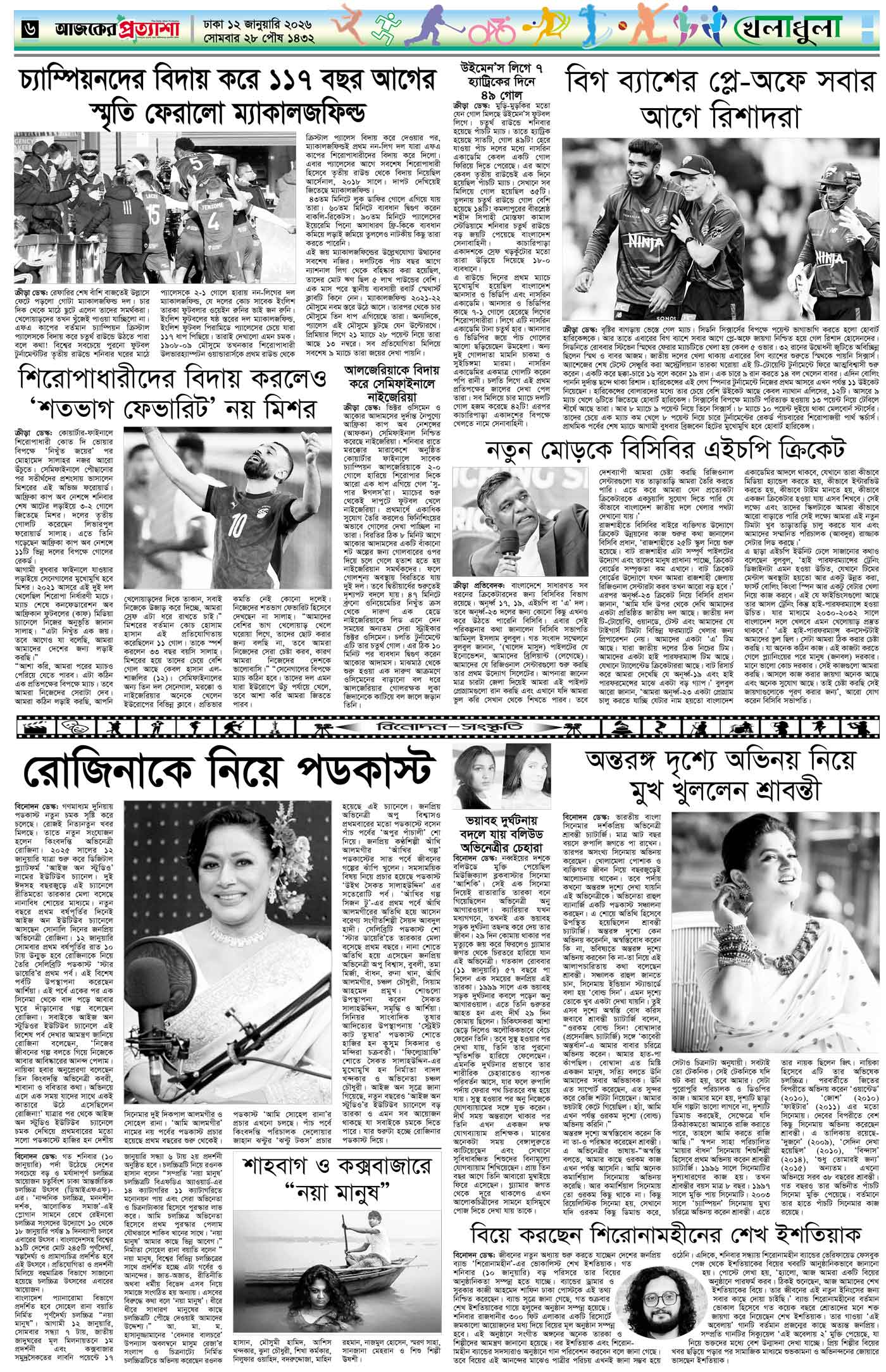 বর্ষ ৩৩ সংখ্যা ২৫৩ Page: 6 January 12, 2026 সোমবার ১২ জানুয়ারি ২০২৬ ঢাকা ২৮ পৌষ ১৪৩২ বঙ্গাব্দ ২২ রজব ১৪৪৭ রেজি.নং-ডিএ-১৩৯৯ Page 1Page 2Page 3Page 4Page 5Page 6Page 7Page 8 Thumbnails × বর্ষ ৩৩ সংখ্যা ২৫৩ পৃষ্ঠা-১।-প্রথম-পাতাপৃষ্ঠা-২।-দেশের-খবরপৃষ্ঠা-৩।-বিদেশের-খবরপৃষ্ঠা-৪।-উপ-সম্পাদকীয়-পৃষ্ঠা-৫।-কৃষি-ও-কৃষকপৃষ্ঠা-৬।-খেলাধুলাপৃষ্ঠা-৭।-খবরপৃষ্ঠা-৮।-শেষের-পাতা << First << 5 6 >> Last >> Hide পৃষ্ঠা-১।-প্রথম-পাতাপৃষ্ঠা-২।-দেশের-খবরপৃষ্ঠা-৩।-বিদেশের-খবরপৃষ্ঠা-৪।-উপ-সম্পাদকীয়-পৃষ্ঠা-৫।-কৃষি-ও-কৃষকপৃষ্ঠা-৬।-খেলাধুলাপৃষ্ঠা-৭।-খবরপৃষ্ঠা-৮।-শেষের-পাতা পৃষ্ঠা-৬।-খেলাধুলা