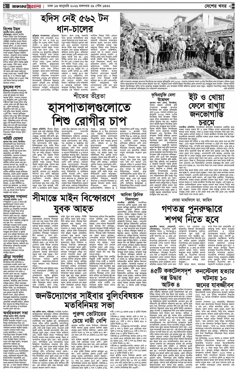 বর্ষ ৩৩ সংখ্যা ২৫৪ Page: 2 January 13, 2026 মঙ্গলবার ১৩ জানুয়ারি ২০২৬ ঢাকা ২৯ পৌষ ১৪৩২ বঙ্গাব্দ ২৩ রজব ১৪৪৭ রেজি.নং-ডিএ-১৩৯৯ Page 1Page 2Page 3Page 4Page 5Page 6Page 7Page 8 Thumbnails × বর্ষ ৩৩ সংখ্যা ২৫৪ পৃষ্ঠা-১।-প্রথম-পাতাপৃষ্ঠা-২।-দেশের-খবরপৃষ্ঠা-৩।-বিদেশের-খবরপৃষ্ঠা-৪।-উপ-সম্পাদকীয়-পৃষ্ঠা-৫।-লাইফস্টাইলপৃষ্ঠা-৬।-খেলাধুলাপৃষ্ঠা-৭।-খবরপৃষ্ঠা-৮।-শেষের-পাতা << First << 1 2 >> Last >> Hide পৃষ্ঠা-১।-প্রথম-পাতাপৃষ্ঠা-২।-দেশের-খবরপৃষ্ঠা-৩।-বিদেশের-খবরপৃষ্ঠা-৪।-উপ-সম্পাদকীয়-পৃষ্ঠা-৫।-লাইফস্টাইলপৃষ্ঠা-৬।-খেলাধুলাপৃষ্ঠা-৭।-খবরপৃষ্ঠা-৮।-শেষের-পাতা পৃষ্ঠা-২।-দেশের-খবর