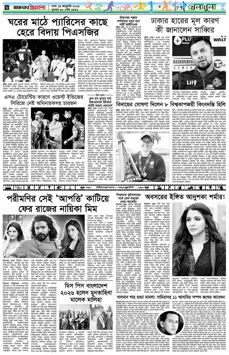 বর্ষ ৩৩ সংখ্যা ২৫৫ Page: 6 January 14, 2026 বুধবার ১৪ জানুয়ারি ২০২৬ ঢাকা ৩০ পৌষ ১৪৩২ বঙ্গাব্দ ২৪ রজব ১৪৪৭ রেজি.নং-ডিএ-১৩৯৯ Page 1Page 2Page 3Page 4Page 5Page 6Page 7Page 8 Thumbnails × বর্ষ ৩৩ সংখ্যা ২৫৫ পৃষ্ঠা-১।-প্রথম-পাতাপৃষ্ঠা-২।-দেশের-খবরপৃষ্ঠা-৩।-বিদেশের-খবরপৃষ্ঠা-৪।-উপ-সম্পাদকীয়-পৃষ্ঠা-৫।-স্বাস্থ-ও-পরিচর্যাপৃষ্ঠা-৬।-খেলাধুলাপৃষ্ঠা-৭।-খবরপৃষ্ঠা-৮।-শেষের-পাতা << First << 5 6 >> Last >> Hide পৃষ্ঠা-১।-প্রথম-পাতাপৃষ্ঠা-২।-দেশের-খবরপৃষ্ঠা-৩।-বিদেশের-খবরপৃষ্ঠা-৪।-উপ-সম্পাদকীয়-পৃষ্ঠা-৫।-স্বাস্থ-ও-পরিচর্যাপৃষ্ঠা-৬।-খেলাধুলাপৃষ্ঠা-৭।-খবরপৃষ্ঠা-৮।-শেষের-পাতা পৃষ্ঠা-৬।-খেলাধুলা