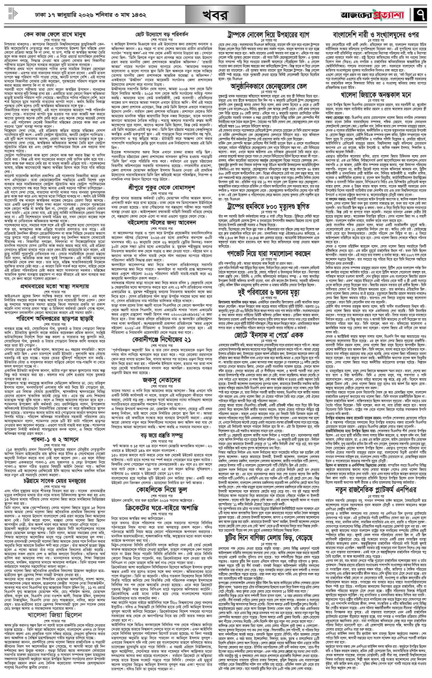 বর্ষ ৩৩ সংখ্যা ২৫৮ Page: 7 January 17, 2026 শনিবার ১৭ জানুয়ারি ২০২৬ ঢাকা ৩ মাঘ ১৪৩২ বঙ্গাব্দ ২৭ রজব ১৪৪৭ রেজি.নং-ডিএ-১৩৯৯ Page 1Page 2Page 3Page 4Page 5Page 6Page 7Page 8 Thumbnails × বর্ষ ৩৩ সংখ্যা ২৫৮ পৃষ্ঠা-১।-প্রথম-পাতাপৃষ্ঠা-২।-দেশের-খবরপৃষ্ঠা-৩।-বিদেশের-খবরপৃষ্ঠা-৪।-উপ-সম্পাদকীয়-পৃষ্ঠা-৫।-সাহিত্যপৃষ্ঠা-৬।-খেলাধুলাপৃষ্ঠা-৭।-খবরপৃষ্ঠা-৮।-শেষের-পাতা << First << 6 7 >> Last >> Hide পৃষ্ঠা-১।-প্রথম-পাতাপৃষ্ঠা-২।-দেশের-খবরপৃষ্ঠা-৩।-বিদেশের-খবরপৃষ্ঠা-৪।-উপ-সম্পাদকীয়-পৃষ্ঠা-৫।-সাহিত্যপৃষ্ঠা-৬।-খেলাধুলাপৃষ্ঠা-৭।-খবরপৃষ্ঠা-৮।-শেষের-পাতা পৃষ্ঠা-৭।-খবর