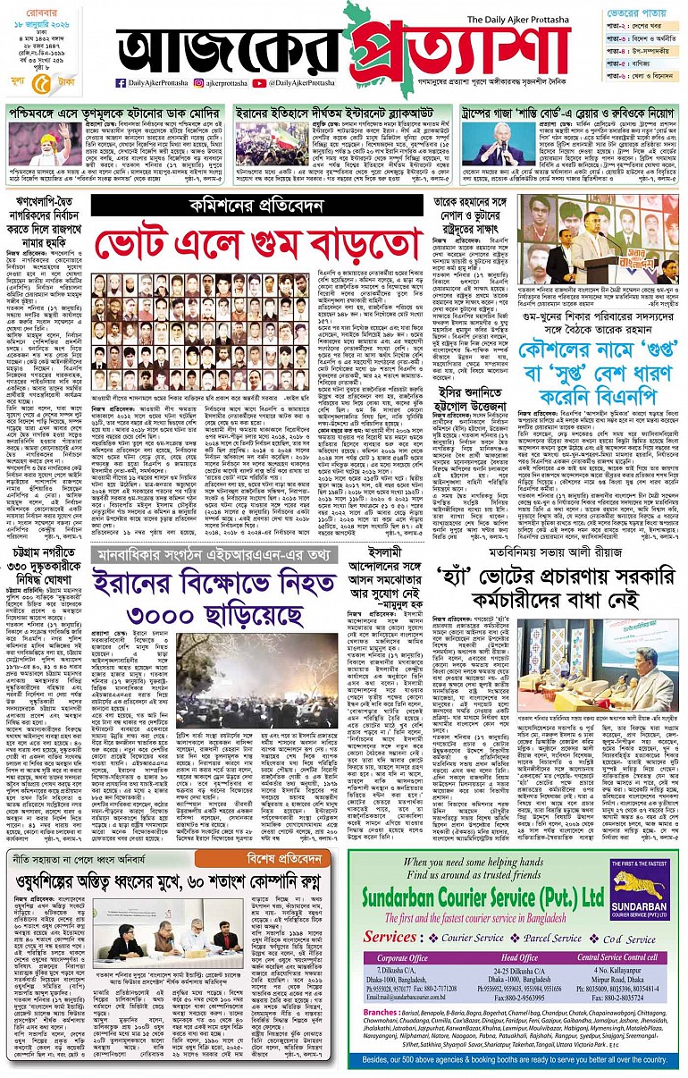 বর্ষ ৩৩ সংখ্যা ২৫৯ January 18, 2026 রোববার ১৮ জানুয়ারি ২০২৬ ঢাকা ৪ মাঘ ১৪৩২ বঙ্গাব্দ ২৮ রজব ১৪৪৭ রেজি.নং-ডিএ-১৩৯৯ Page 1Page 2Page 3Page 4Page 5Page 6Page 7Page 8 Thumbnails × বর্ষ ৩৩ সংখ্যা ২৫৯ পৃষ্ঠা-১।-প্রথম-পাতাপৃষ্ঠা-২।-দেশের-খবরপৃষ্ঠা-৩।-বিদেশের-খবরপৃষ্ঠা-৪।-উপ-সম্পাদকীয়-পৃষ্ঠা-৫।-বাণিজ্যপৃষ্ঠা-৬।-খেলাধুলাপৃষ্ঠা-৭।-খবরপৃষ্ঠা-৮।-শেষের-পাতা << First << 1 2 >> Last >> Hide পৃষ্ঠা-১।-প্রথম-পাতাপৃষ্ঠা-২।-দেশের-খবরপৃষ্ঠা-৩।-বিদেশের-খবরপৃষ্ঠা-৪।-উপ-সম্পাদকীয়-পৃষ্ঠা-৫।-বাণিজ্যপৃষ্ঠা-৬।-খেলাধুলাপৃষ্ঠা-৭।-খবরপৃষ্ঠা-৮।-শেষের-পাতা পৃষ্ঠা-১।-প্রথম-পাতা