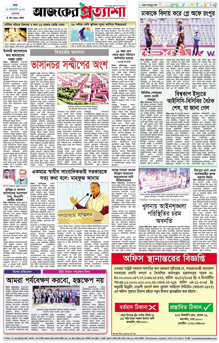 বর্ষ ৩৩ সংখ্যা ২৫৯ Page: 8 January 18, 2026 রোববার ১৮ জানুয়ারি ২০২৬ ঢাকা ৪ মাঘ ১৪৩২ বঙ্গাব্দ ২৮ রজব ১৪৪৭ রেজি.নং-ডিএ-১৩৯৯ Page 1Page 2Page 3Page 4Page 5Page 6Page 7Page 8 Thumbnails × বর্ষ ৩৩ সংখ্যা ২৫৯ পৃষ্ঠা-১।-প্রথম-পাতাপৃষ্ঠা-২।-দেশের-খবরপৃষ্ঠা-৩।-বিদেশের-খবরপৃষ্ঠা-৪।-উপ-সম্পাদকীয়-পৃষ্ঠা-৫।-বাণিজ্যপৃষ্ঠা-৬।-খেলাধুলাপৃষ্ঠা-৭।-খবরপৃষ্ঠা-৮।-শেষের-পাতা << First << 7 8 >> Last >> Hide পৃষ্ঠা-১।-প্রথম-পাতাপৃষ্ঠা-২।-দেশের-খবরপৃষ্ঠা-৩।-বিদেশের-খবরপৃষ্ঠা-৪।-উপ-সম্পাদকীয়-পৃষ্ঠা-৫।-বাণিজ্যপৃষ্ঠা-৬।-খেলাধুলাপৃষ্ঠা-৭।-খবরপৃষ্ঠা-৮।-শেষের-পাতা পৃষ্ঠা-৮।-শেষের-পাতা