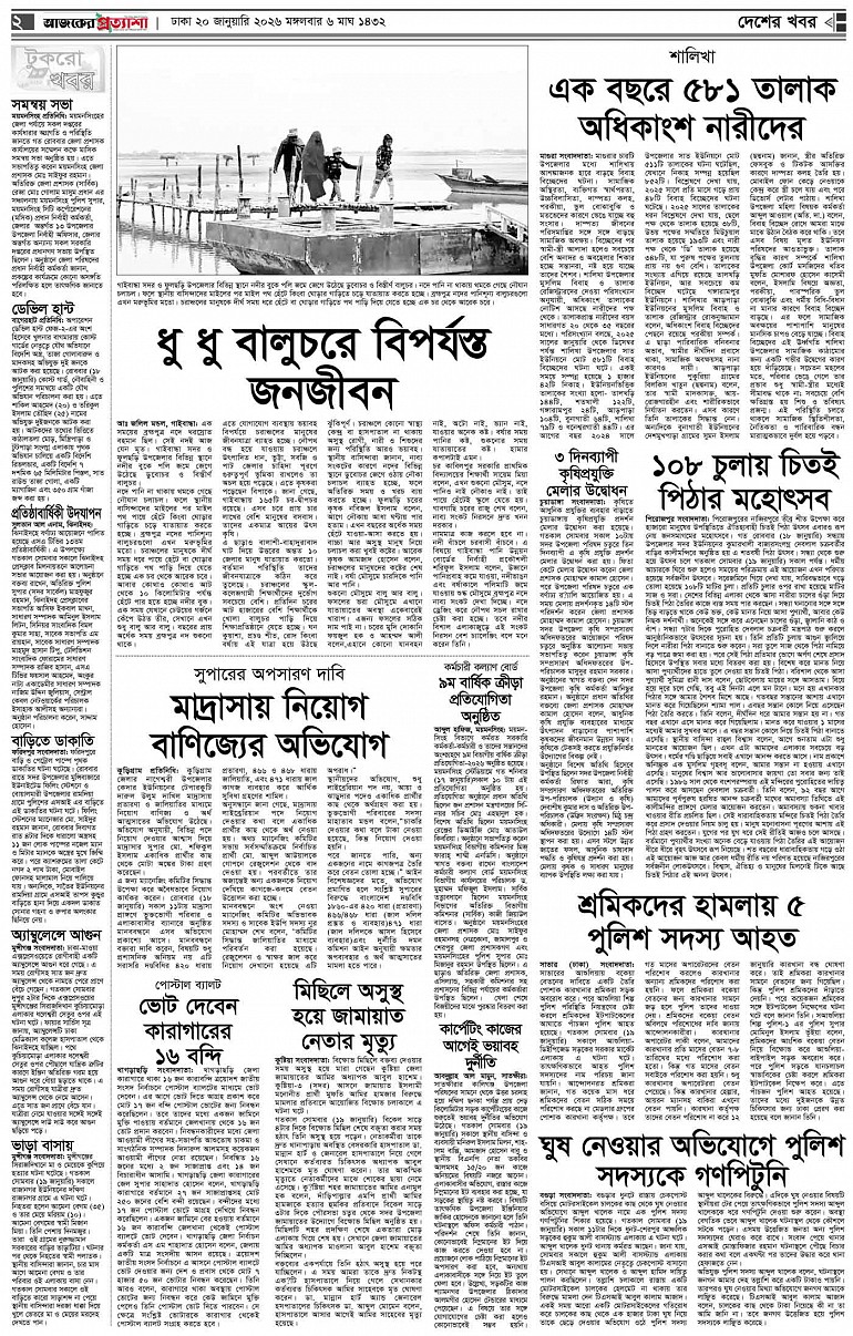 বর্ষ ৩৩ সংখ্যা ২৬১ Page: 2 January 20, 2026 মঙ্গলবার ২০ জানুয়ারি ২০২৬ ঢাকা ৬ মাঘ ১৪৩২ বঙ্গাব্দ ৩০ রজব ১৪৪৭ রেজি.নং-ডিএ-১৩৯৯ Page 1Page 2Page 3Page 4Page 5Page 6Page 7Page 8 Thumbnails × বর্ষ ৩৩ সংখ্যা ২৬১ পৃষ্ঠা-১।-প্রথম-পাতাপৃষ্ঠা-২।-দেশের-খবরপৃষ্ঠা-৩।-বিদেশের-খবরপৃষ্ঠা-৪।-উপ-সম্পাদকীয়-পৃষ্ঠা-৫।-লাইফস্টাইলপৃষ্ঠা-৬।-খেলাধুলাপৃষ্ঠা-৭।-খবরপৃষ্ঠা-৮।-শেষের-পাতা << First << 1 2 >> Last >> Hide পৃষ্ঠা-১।-প্রথম-পাতাপৃষ্ঠা-২।-দেশের-খবরপৃষ্ঠা-৩।-বিদেশের-খবরপৃষ্ঠা-৪।-উপ-সম্পাদকীয়-পৃষ্ঠা-৫।-লাইফস্টাইলপৃষ্ঠা-৬।-খেলাধুলাপৃষ্ঠা-৭।-খবরপৃষ্ঠা-৮।-শেষের-পাতা পৃষ্ঠা-২।-দেশের-খবর