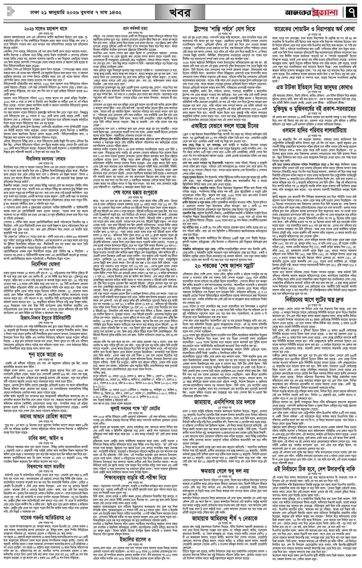 বর্ষ ৩৩ সংখ্যা ২৬২ Page: 7 January 21, 2026 বুধবার ২১ জানুয়ারি ২০২৬ ঢাকা ৭ মাঘ ১৪৩২ বঙ্গাব্দ ১ শাবান ১৪৪৭ রেজি.নং-ডিএ-১৩৯৯ Page 1Page 2Page 3Page 4Page 5Page 6Page 7Page 8 Thumbnails × বর্ষ ৩৩ সংখ্যা ২৬২ পৃষ্ঠা-১।-প্রথম-পাতাপৃষ্ঠা-২।-দেশের-খবরপৃষ্ঠা-৩।-বিদেশের-খবরপৃষ্ঠা-৪।-উপ-সম্পাদকীয়-পৃষ্ঠা-৫।-স্বাস্থ-ও-পরিচর্যাপৃষ্ঠা-৬।-খেলাধুলাপৃষ্ঠা-৭।-খবরপৃষ্ঠা-৮।-শেষের-পাতা << First << 6 7 >> Last >> Hide পৃষ্ঠা-১।-প্রথম-পাতাপৃষ্ঠা-২।-দেশের-খবরপৃষ্ঠা-৩।-বিদেশের-খবরপৃষ্ঠা-৪।-উপ-সম্পাদকীয়-পৃষ্ঠা-৫।-স্বাস্থ-ও-পরিচর্যাপৃষ্ঠা-৬।-খেলাধুলাপৃষ্ঠা-৭।-খবরপৃষ্ঠা-৮।-শেষের-পাতা পৃষ্ঠা-৭।-খবর