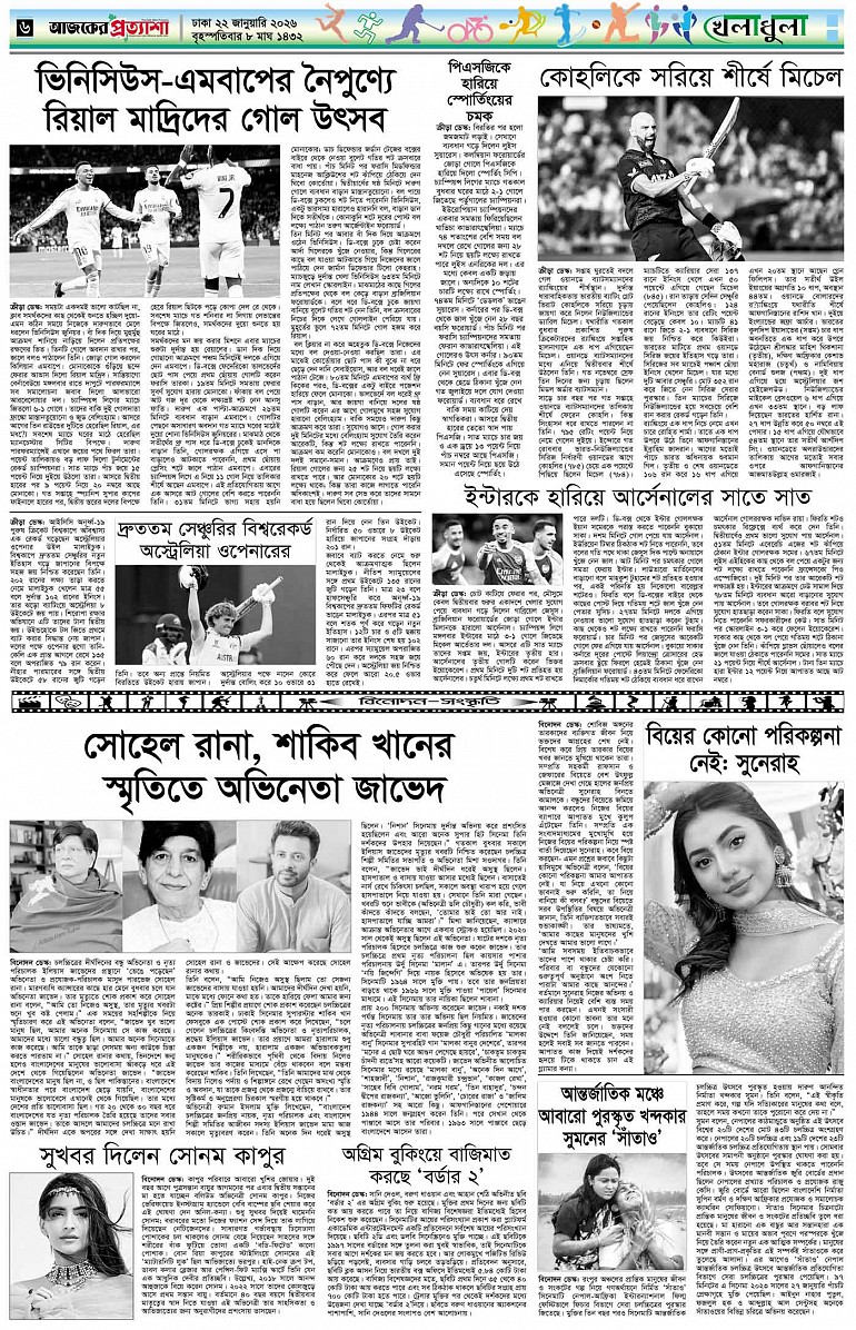 বর্ষ ৩৩ সংখ্যা ২৬৩ Page: 6 January 22, 2026 বৃহস্পতিবার ২২ জানুয়ারি ২০২৬ ঢাকা ৮ মাঘ ১৪৩২ বঙ্গাব্দ ২ শাবান ১৪৪৭ রেজি.নং-ডিএ-১৩৯৯ Page 1Page 2Page 3Page 4Page 5Page 6Page 7Page 8 Thumbnails × বর্ষ ৩৩ সংখ্যা ২৬৩ পৃষ্ঠা-১।-প্রথম-পাতাপৃষ্ঠা-২।-দেশের-খবরপৃষ্ঠা-৩।-বিদেশের-খবরপৃষ্ঠা-৪।-উপ-সম্পাদকীয়-পৃষ্ঠা-৫।-নারী-ও-শিশুপৃষ্ঠা-৬।-খেলাধুলাপৃষ্ঠা-৭।-খবরপৃষ্ঠা-৮।-শেষের-পাতা << First << 5 6 >> Last >> Hide পৃষ্ঠা-১।-প্রথম-পাতাপৃষ্ঠা-২।-দেশের-খবরপৃষ্ঠা-৩।-বিদেশের-খবরপৃষ্ঠা-৪।-উপ-সম্পাদকীয়-পৃষ্ঠা-৫।-নারী-ও-শিশুপৃষ্ঠা-৬।-খেলাধুলাপৃষ্ঠা-৭।-খবরপৃষ্ঠা-৮।-শেষের-পাতা পৃষ্ঠা-৬।-খেলাধুলা