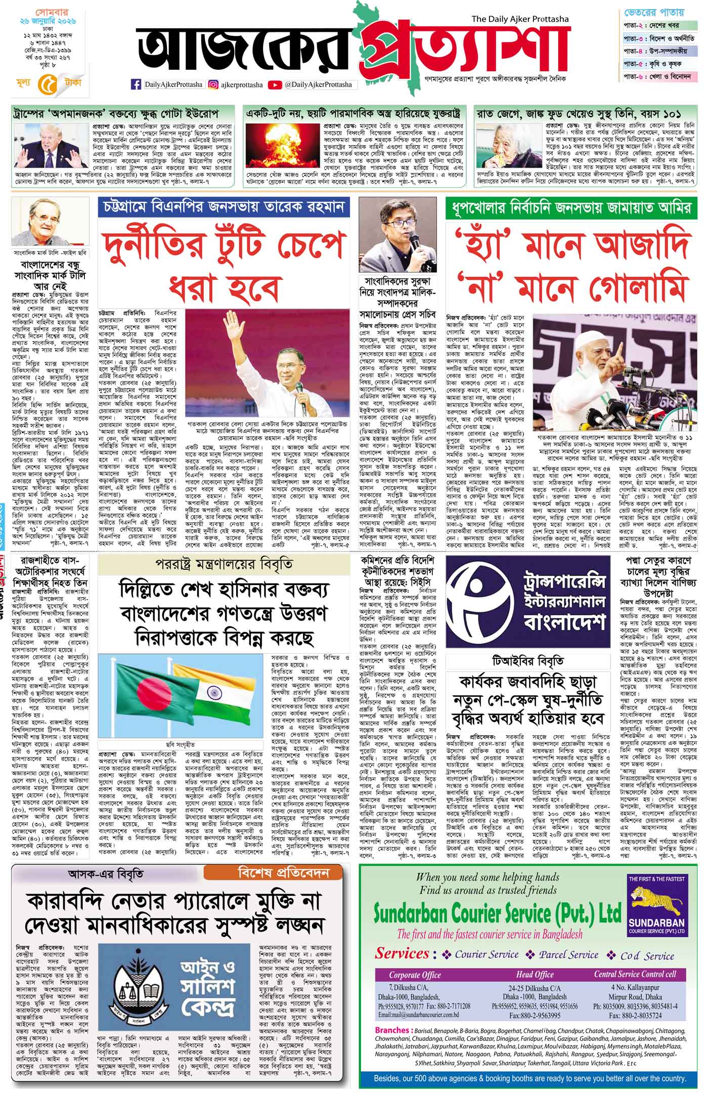 বর্ষ ৩৩ সংখ্যা ২৬৭ January 26, 2026 সোমবার ২৬ জানুয়ারি ২০২৬ ঢাকা ১২ মাঘ ১৪৩২ বঙ্গাব্দ ৬ শাবান ১৪৪৭ রেজি.নং-ডিএ-১৩৯৯ Page 1Page 2Page 3Page 4Page 5Page 6Page 7Page 8 Thumbnails × বর্ষ ৩৩ সংখ্যা ২৬৭ পৃষ্ঠা-১।-প্রথম-পাতাপৃষ্ঠা-২।-দেশের-খবরপৃষ্ঠা-৩।-বিদেশের-খবরপৃষ্ঠা-৪।-উপ-সম্পাদকীয়-পৃষ্ঠা-৫।-কৃষি-ও-কৃষকপৃষ্ঠা-৬।-খেলাধুলাপৃষ্ঠা-৭।-খবরপৃষ্ঠা-৮।-শেষের-পাতা << First << 1 2 >> Last >> Hide পৃষ্ঠা-১।-প্রথম-পাতাপৃষ্ঠা-২।-দেশের-খবরপৃষ্ঠা-৩।-বিদেশের-খবরপৃষ্ঠা-৪।-উপ-সম্পাদকীয়-পৃষ্ঠা-৫।-কৃষি-ও-কৃষকপৃষ্ঠা-৬।-খেলাধুলাপৃষ্ঠা-৭।-খবরপৃষ্ঠা-৮।-শেষের-পাতা পৃষ্ঠা-১।-প্রথম-পাতা