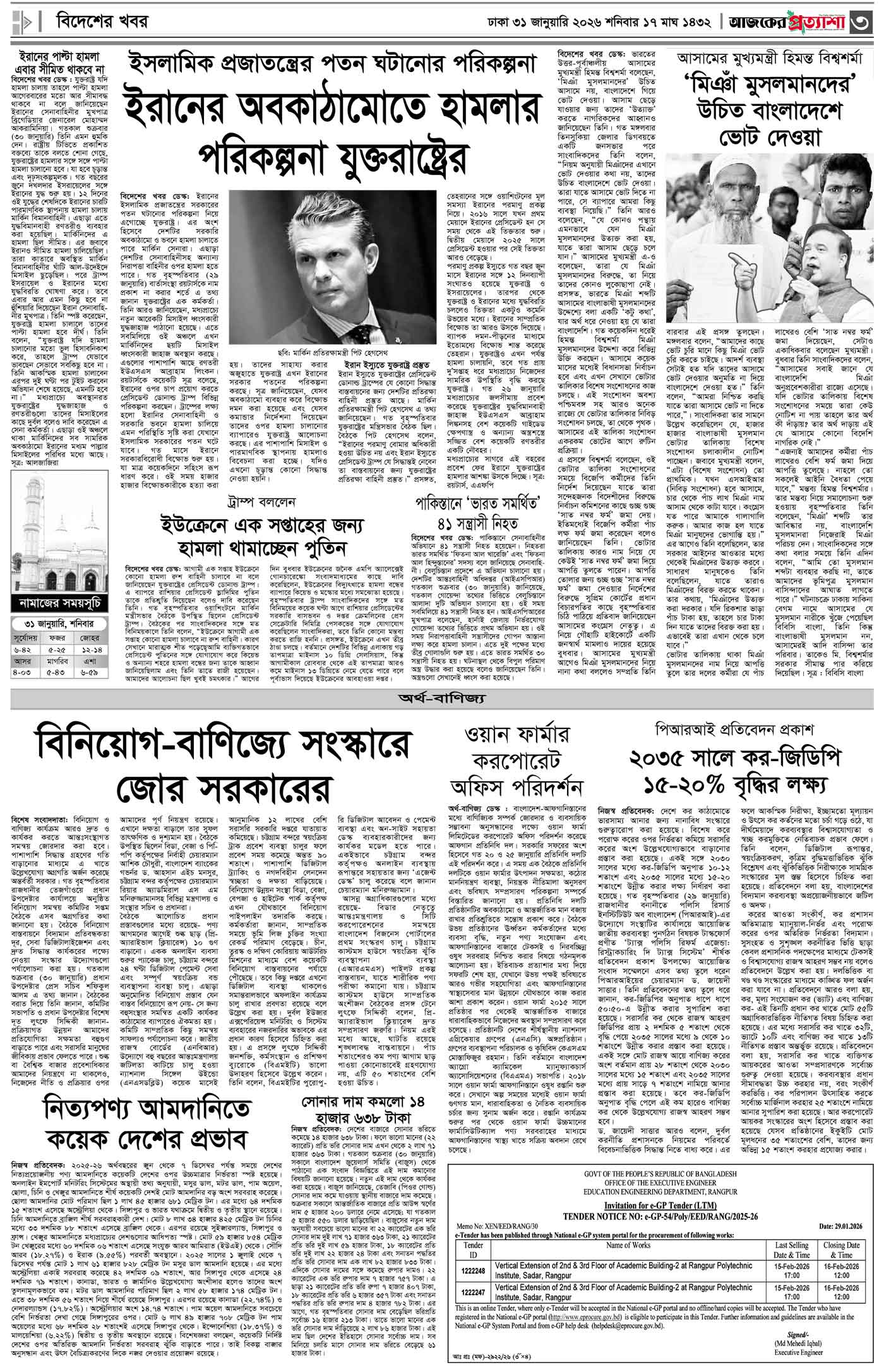 বর্ষ ৩৩ সংখ্যা ২৭২ Page: 3 January 31, 2026 শনিবার , ৩১ জানুয়ারি ২০২৬ ঢাকা ১৭ মাঘ ১৪৩২ বঙ্গাব্দ ১১ শাবান ১৪৪৭ হিজরী রেজি. নং – ডিএ-১৩৯৯ Page 1Page 2Page 3Page 4Page 5Page 6Page 7Page 8 Thumbnails × বর্ষ ৩৩ সংখ্যা ২৭২ পৃষ্ঠা-১।-প্রথম-পাতাপৃষ্ঠা-২।-দেশের-খবরপৃষ্ঠা-৩।-বিদেশের-খবরপৃষ্ঠা-৪।-উপ-সম্পাদকীয়-পৃষ্ঠা-৫।-সাহিত্যপৃষ্ঠা-৬।-খেলাধুলাপৃষ্ঠা-৭।-খবরপৃষ্ঠা-৮।-শেষের-পাতা << First << 2 3 >> Last >> Hide পৃষ্ঠা-১।-প্রথম-পাতাপৃষ্ঠা-২।-দেশের-খবরপৃষ্ঠা-৩।-বিদেশের-খবরপৃষ্ঠা-৪।-উপ-সম্পাদকীয়-পৃষ্ঠা-৫।-সাহিত্যপৃষ্ঠা-৬।-খেলাধুলাপৃষ্ঠা-৭।-খবরপৃষ্ঠা-৮।-শেষের-পাতা পৃষ্ঠা-৩।-বিদেশের-খবর