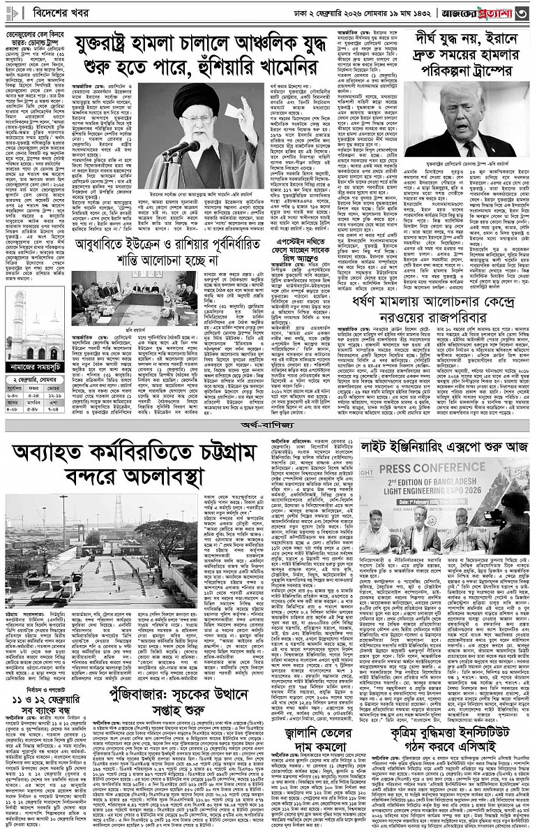 বর্ষ ৩৩ সংখ্যা ২৭৪ Page: 3 February 02, 2026 সোমবার ২ ফেব্রুয়ারি ২০২৬ ঢাকা ১৯ মাঘ ১৪৩২ বঙ্গাব্দ ১৩ শাবান ১৪৪৭ রেজি.নং-ডিএ-১৩৯৯ Page 1Page 2Page 3Page 4Page 5Page 6Page 7Page 8 Thumbnails × বর্ষ ৩৩ সংখ্যা ২৭৪ পৃষ্ঠা-১।-প্রথম-পাতাপৃষ্ঠা-২।-দেশের-খবরপৃষ্ঠা-৩।-বিদেশের-খবরপৃষ্ঠা-৪।-উপ-সম্পাদকীয়-পৃষ্ঠা-৫।-বিজ্ঞান-ও-প্রযুক্তিপৃষ্ঠা-৬।-খেলাধুলাপৃষ্ঠা-৭।-খবরপৃষ্ঠা-৮।-শেষের-পাতা << First << 2 3 >> Last >> Hide পৃষ্ঠা-১।-প্রথম-পাতাপৃষ্ঠা-২।-দেশের-খবরপৃষ্ঠা-৩।-বিদেশের-খবরপৃষ্ঠা-৪।-উপ-সম্পাদকীয়-পৃষ্ঠা-৫।-বিজ্ঞান-ও-প্রযুক্তিপৃষ্ঠা-৬।-খেলাধুলাপৃষ্ঠা-৭।-খবরপৃষ্ঠা-৮।-শেষের-পাতা পৃষ্ঠা-৩।-বিদেশের-খবর