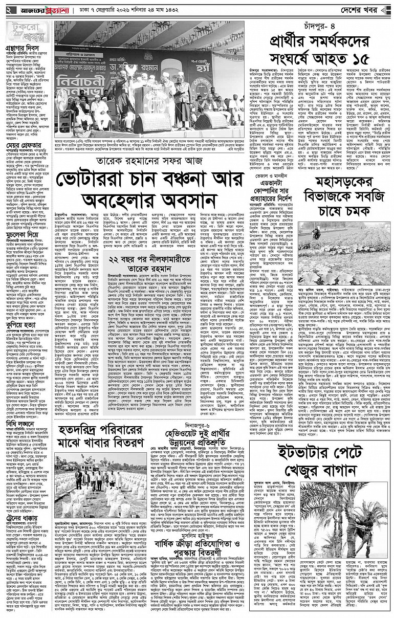 বর্ষ ৩৩ সংখ্যা ২৭৮ Page: 2 February 07, 2026 শনিবার ৭ ফেব্রুয়ারি ২০২৬ ঢাকা ২৪ মাঘ ১৪৩২ বঙ্গাব্দ ১৮ শাবান ১৪৪৭ রেজি.নং-ডিএ-১৩৯৯ Page 1Page 2Page 3Page 4Page 5Page 6Page 7Page 8 Thumbnails × বর্ষ ৩৩ সংখ্যা ২৭৮ পৃষ্ঠা-১।-প্রথম-পাতাপৃষ্ঠা-২।-দেশের-খবরপৃষ্ঠা-৩।-বিদেশের-খবরপৃষ্ঠা-৪।-উপ-সম্পাদকীয়-পৃষ্ঠা-৫।-সাহিত্যপৃষ্ঠা-৬।-খেলাধুলাপৃষ্ঠা-৭।-খবরপৃষ্ঠা-৮।-শেষের-পাতা << First << 1 2 >> Last >> Hide পৃষ্ঠা-১।-প্রথম-পাতাপৃষ্ঠা-২।-দেশের-খবরপৃষ্ঠা-৩।-বিদেশের-খবরপৃষ্ঠা-৪।-উপ-সম্পাদকীয়-পৃষ্ঠা-৫।-সাহিত্যপৃষ্ঠা-৬।-খেলাধুলাপৃষ্ঠা-৭।-খবরপৃষ্ঠা-৮।-শেষের-পাতা পৃষ্ঠা-২।-দেশের-খবর