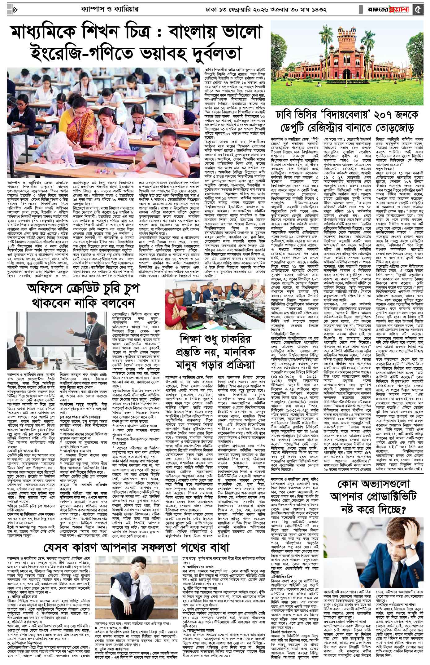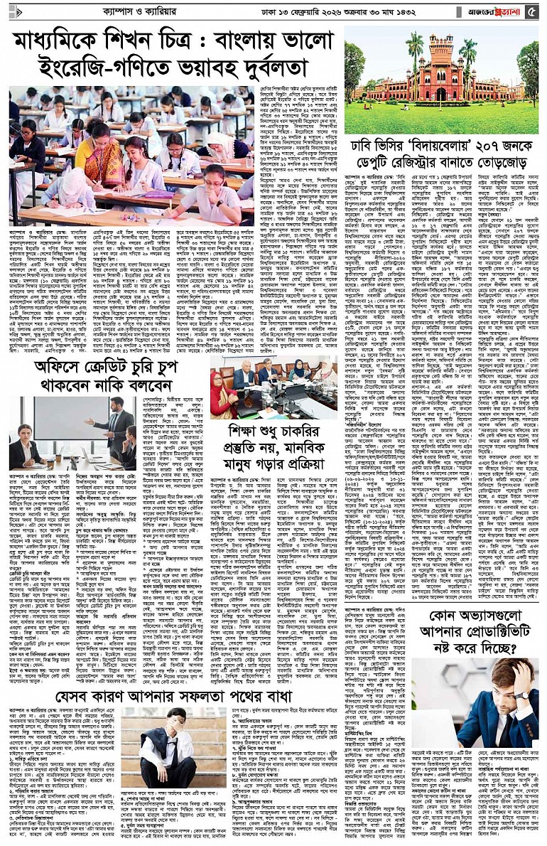 বর্ষ ৩৩ সংখ্যা ২৮৪ Page: 5 February 13, 2026 শুক্রবার ১৩ ফেব্রুয়ারি ২০২৬ ঢাকা ৩০ মাঘ ১৪৩২ বঙ্গাব্দ ২৪ শাবান ১৪৪৭ রেজি.নং-ডিএ-১৩৯৯ Page 1Page 2Page 3Page 4Page 5Page 6Page 7Page 8 Thumbnails × বর্ষ ৩৩ সংখ্যা ২৮৪ পৃষ্ঠা-১।-প্রথম-পাতাপৃষ্ঠা-২।-দেশের-খবরপৃষ্ঠা-৩।-বিদেশের-খবরপৃষ্ঠা-৪।-উপ-সম্পাদকীয়-পৃষ্ঠা-৫।ক্যাম্পাস-ও-ক্যারিয়ারপৃষ্ঠা-৬।-খেলাধুলাপৃষ্ঠা-৭।-খবরপৃষ্ঠা-৮।-শেষের-পাতা << First << 4 5 >> Last >> Hide পৃষ্ঠা-১।-প্রথম-পাতাপৃষ্ঠা-২।-দেশের-খবরপৃষ্ঠা-৩।-বিদেশের-খবরপৃষ্ঠা-৪।-উপ-সম্পাদকীয়-পৃষ্ঠা-৫।ক্যাম্পাস-ও-ক্যারিয়ারপৃষ্ঠা-৬।-খেলাধুলাপৃষ্ঠা-৭।-খবরপৃষ্ঠা-৮।-শেষের-পাতা পৃষ্ঠা-৫।ক্যাম্পাস-ও-ক্যারিয়ার