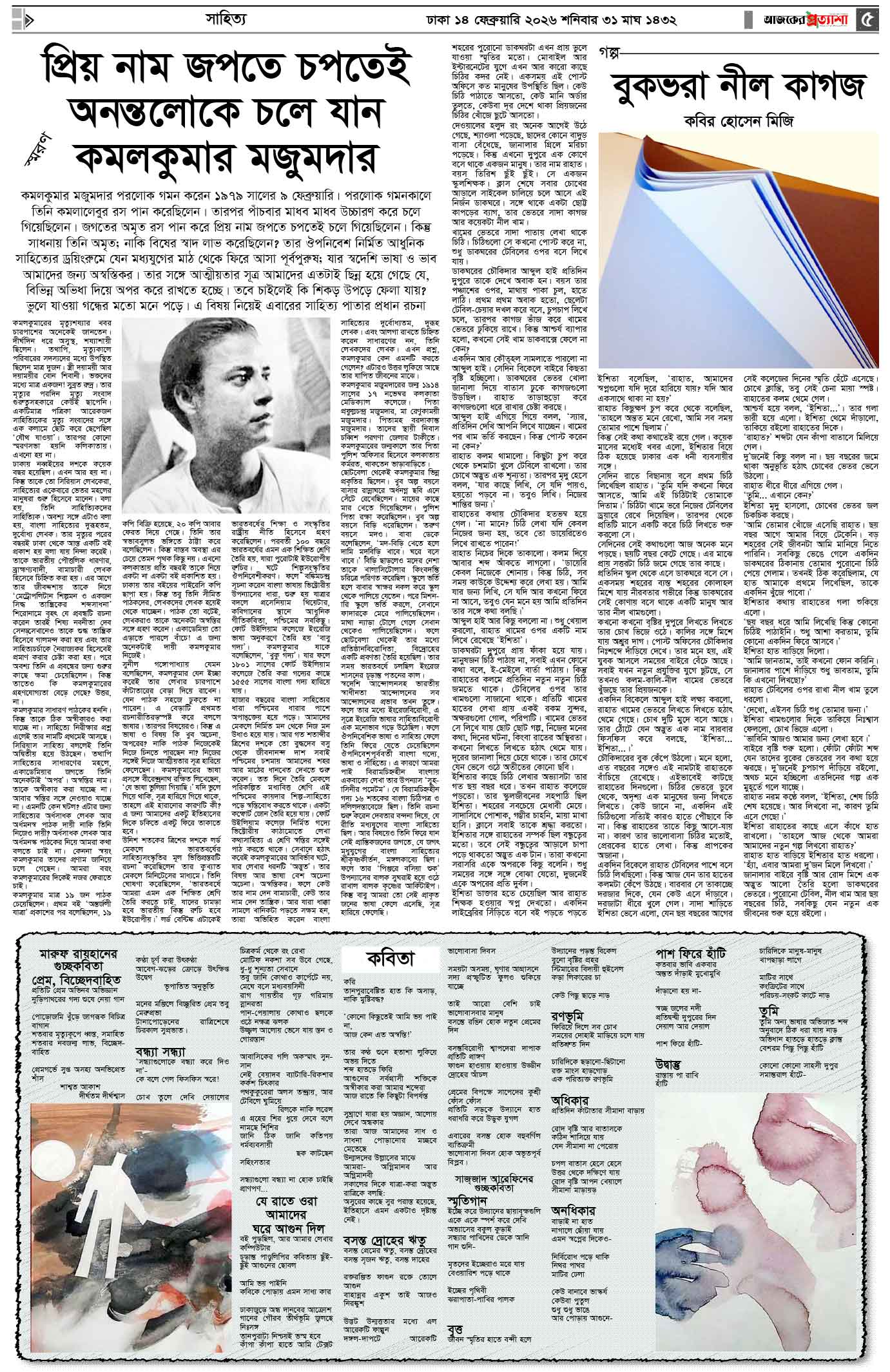 বর্ষ ৩৩ সংখ্যা ২৮৫ Page: 5 February 14, 2026 শনিবার ১৪ ফেব্রুয়ারি ২০২৬ ঢাকা ১ ফাল্গুন ১৪৩২ বঙ্গাব্দ ২৫ শাবান ১৪৪৭ রেজি.নং-ডিএ-১৩৯৯ Page 1Page 2Page 3Page 4Page 5Page 6Page 7Page 8 Thumbnails × বর্ষ ৩৩ সংখ্যা ২৮৫ পৃষ্ঠা-১।-প্রথম-পাতাপৃষ্ঠা-২।-দেশের-খবরপৃষ্ঠা-৩।-বিদেশের-খবরপৃষ্ঠা-৪।-উপ-সম্পাদকীয়-পৃষ্ঠা-৫।-সাহিত্যপৃষ্ঠা-৬।-খেলাধুলাপৃষ্ঠা-৭।-খবরপৃষ্ঠা-৮।-শেষের-পাতা << First << 4 5 >> Last >> Hide পৃষ্ঠা-১।-প্রথম-পাতাপৃষ্ঠা-২।-দেশের-খবরপৃষ্ঠা-৩।-বিদেশের-খবরপৃষ্ঠা-৪।-উপ-সম্পাদকীয়-পৃষ্ঠা-৫।-সাহিত্যপৃষ্ঠা-৬।-খেলাধুলাপৃষ্ঠা-৭।-খবরপৃষ্ঠা-৮।-শেষের-পাতা পৃষ্ঠা-৫।-সাহিত্য