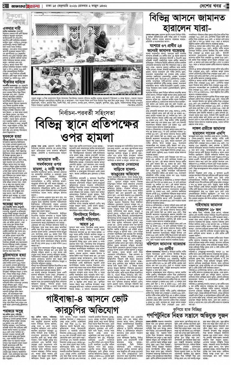বর্ষ ৩৩ সংখ্যা ২৮৬ Page: 2 February 15, 2026 রোববার ১৫ ফেব্রুয়ারি ২০২৬ ঢাকা ২ ফাল্গুন ১৪৩২ বঙ্গাব্দ ২৬ শাবান ১৪৪৭ রেজি.নং-ডিএ-১৩৯৯ Page 1Page 2Page 3Page 4Page 5Page 6Page 7Page 8 Thumbnails × বর্ষ ৩৩ সংখ্যা ২৮৬ পৃষ্ঠা-১।-প্রথম-পাতাপৃষ্ঠা-২।-দেশের-খবরপৃষ্ঠা-৩।-বিদেশের-খবরপৃষ্ঠা-৪।-উপ-সম্পাদকীয়-পৃষ্ঠা-৫।-বাণিজ্যপৃষ্ঠা-৬।-খেলাধুলাপৃষ্ঠা-৭।-খবরপৃষ্ঠা-৮।-শেষের-পাতা << First << 1 2 >> Last >> Hide পৃষ্ঠা-১।-প্রথম-পাতাপৃষ্ঠা-২।-দেশের-খবরপৃষ্ঠা-৩।-বিদেশের-খবরপৃষ্ঠা-৪।-উপ-সম্পাদকীয়-পৃষ্ঠা-৫।-বাণিজ্যপৃষ্ঠা-৬।-খেলাধুলাপৃষ্ঠা-৭।-খবরপৃষ্ঠা-৮।-শেষের-পাতা পৃষ্ঠা-২।-দেশের-খবর